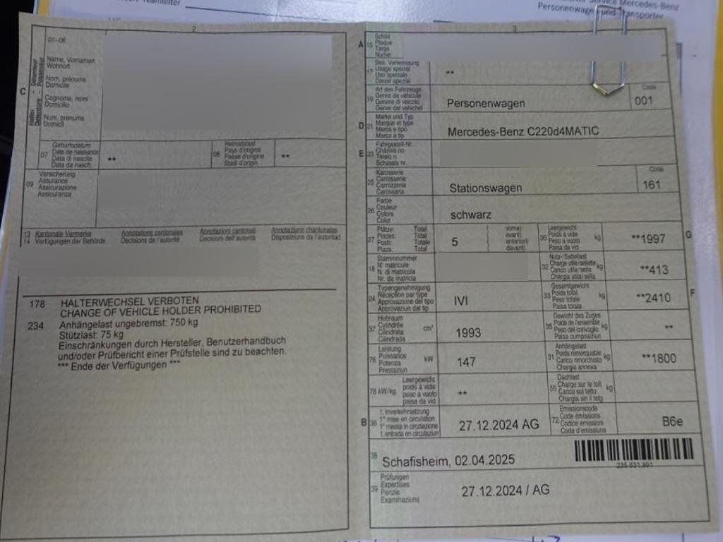 Fahrzeugausweis | Vorhanden |