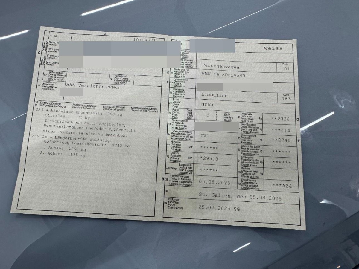 Paket: Connected Package Professional, Licht: LED-Scheinwerfer – Abblendlicht (Bi-LED-Technologie) – Fernlicht (Bi-LED-Technologie) – Tagfahrlicht LED-Technologie) – Fahrtrichtungsanzeiger Augenbraue (LED-Technologie), Wärme-/Sonnenschutzverglasung, Ambientes Innenlicht – dynamische Funktion des Ambiente Lichtes für 4 Anwendungsfälle: Welcome, Good Bye, Offene Türe, Telefonanruf – umfasst 9 wählbare Farben (elfenbein, citrin, smaragd, türkis, perle, azur, flamingo, koralle, rose) – ambiente Wasserfallbeleuchtung vorne und hinten – ambiente Fußraumbeleuchtung vorne und hinten – ambiente Ablagefachbeleuchtung der Mittelkonsole – Konturbeleuchtung in Instrumententafel und Türverkleidung – ambiente Türöffnerbeleuchtung, Media: BMW Live Cockpit Plus – Anzeigeverbund bestehend aus einem volldigitalen Instrumentendisplay mit 12,3″ und einem hochauflösendem Control Display mit 14,9″ – BMW Operating System 8.5 – Navigationsfunktion – Intuitive Bedienmöglichkeiten – Fahrerprofil – Tuner mit Diversity-Empfang und RDS – USB-Anschlüsse – Bluetooth / WiFi Schnittstelle – 4G LTE Connectivity – Remote Software Upgrade, BMW Garantie: Gewährleistungsverlängerung – 3 Jahre/100.000 km Gültigkeit: 3 Jahre oder 100.000 Kilometer – es gilt das zuerst Erreichte, Räder: Reifen Pannen Anzeige, Assist: Dynamische Stabilitäts Control (DSC) mit erweiterten Umfängen – Dynamische Stabilitätskontrolle (DSC) – Cornering Brake Control (CBC) – Automatic Stability Control (ASC) – Dynamic Brake Control (DBC) – Electronic Differential Lock Control (EDLC) – Anhänger-Stabilisierungs-Logik – Dynamische Traktions Control (DTC) – Trockenbremsen – Fading-Unterstützung – Anfahrassistent, 3-Punkt-Sicherheitsgurte auf allen Plätzen, Einstiegsleisten, vorn mit Schriftzug BMW, Warndreieck – inklusive Erste-Hilfe-Set, Assist: Aufmerksamkeitsassistent, ab 70 km/h aufwärts, Assist: Crash-Sensor, Steckdose 12V, Fussmatten in Velours, Innenbeleuchtung beinhaltet: – Innen- und Leselicht vorne – Make-Up-Spiegel-Leuchten – Beleuchtung Armauflage Ablagefach – Handschuhfachbeleuchtung – Fußraumleuchten vorne und hinten – Gepäckraumbeleuchtung, Sitze: Seriensitz für Fahrer und Beifahrer, manuell, Fahrwerk: Adaptives M Fahrwerk – straffere Feder-/Dämpferauslegung – durch elektronisch geregelte Dämpfer, die radindividuell angesteuert werden, deutlich erhöhte Sportlichkeit unter Beibehaltung eines hohen Komfortlevels – Änderung der Abstimmung je nach Einstellung des Fahrerlebnisschalters (z.B. bei 'Sport’ dynamischeres/agileres Fahrverhalten), Klima: Klimaautomatik – 3-Zonen-Klimaautomatik mit erweiterten Umfängen – Soll-Temperaturregelung für Fahr-Beifahrer und Fond getrennt einstellbar – Automatikprogramm mit 5 Intensitätsstufen für Fahr- Beifahrer getrennt – Einstellung der Temperaturschichtung für Fahrer und Beifahrer getrennt über MMI (Menüeinsprungtaste am Klimabedienfeld) – SYNC-Funktion – automatische Umluft-Control – maximales Kühlen (MAX AC) – Beschlag- und Solarsensor – Aktivkohlefilter für Frisch- und Umluft – Standlüftung mit Timer, Alarmanlage – zur Überwachung der Türen, Front- und Heckklappe, inklusive Innenraumschutz, Neigungsalarmgeber und Notstromsirene, Assist: Akustischer Fussgängerschutz – Künstlich generierter Sound beim elektrischen Fahren bis 30 km/h zum Schutz anderer Verkehrsteilnehmer, Ablagemöglichkeiten – Türtaschen vorn (eine 1,0 l Flasche kann bequem in der Türtasche abgestellt werden) – Ablagefach in Seitenverkleidung hinten – Ablageschale sowie -fach mit Deckel in der Mittelkonsole – Fach vor Getränkehalter, Active Guard Plus – Spurverlassenswarnung mit aktiver Rückführung (ab ca. 70 km/h) – Auffahr- und Personenwarnung mit City-Bremsfunktion – Speed Limit Info mit manuellem Speed Limit Assist, Media: ConnectedDrive Services, Endrohrblenden, sichtbar, Licht: Leuchtweitenregulierung automatisch, Media: DAB+ Tuner, Airbag: Seitenairbag für Fahrer und Beifahrer, Airbag: Airbag Beifahrer deaktivierbar, Paket: Ablagenpaket Gepäckraum: – Netz an Seitenverkleidung – Taschenhaken – 12 V Steckdose (nur mit Anhängerkupplung) – Taster AHV (ausfahrbare Anhängevorrichtung) rechte Seite, immer in Schwarz, Assist: Geschwindigkeitsregelung mit Bremsfunktion Geschwindigkeitsregelung ab ca. 30 km/h auch bei Bergabfahrten durch zusätzlichen Bremseingriff, Bedienung über Multifunktionslenkrad, Anzeige der Wunschgeschwindigkeit und des Betriebsmodus in der Instrumentenkombination, Fahrer kann Funktion jederzeit übersteuern., M Hochglanz Shadow Line Ausführung in Schwarz hochglänzend: – Blende Spiegeldreieck – Spiegelschwert – Spiegelfuß – Spiegelbrille – B-Säule und Fensterführungsstege – Fensterschachtabdeckung – Fensterumrandung, Getriebe: Direktantrieb, Gesetzlicher Notruf, Airbag: Frontairbagsystem für Fahrer und Beifahrer, Räder: Reifendruck-Kontrolle, Ladekabel Professional (Mode 3) für öffentliches Laden (bis zu 22 kW) AC Laden zu Hause oder unterwegs: – Ladeleistung 22kW, 3-phasig; max. Stromstärke 32A – AC Stecker: Typ, Schliessystem mit Zentralverriegelung inklusive 2 Fernbedienungen mit integriertem Schlüssel, Paket: Innen- und Aussenspiegelpaket, Dekor: Interieurleisten 'Dark Graphite’ matt, Räder: Reifenpannenset Plus – Reifendichtmittel – einteilig mit autarker Stromversorgung über aufladbare Batterie – Befestigung am Rad über Magnete und Befestigungs-Pin in den Poly-Control-Bohrungen – selbständige Befüllung des Reifens während des Fahrbetriebes – einfachere Selbsthilfe und Bedienbarkeit – zeitlich reduziertere Aufenthaltszeit am Pannenort, Antiblockiersystem (ABS), Lackierung: Uni-Lackierung, Licht: Heimleuchten, Verzurrösen, Airbag: Window-Kopfairbags vorne und hinten, Servolenkung geschwindigkeitsabhängig, Polster: Sensatec perforiert, Innenspiegel, automatisch abblendend Abbl