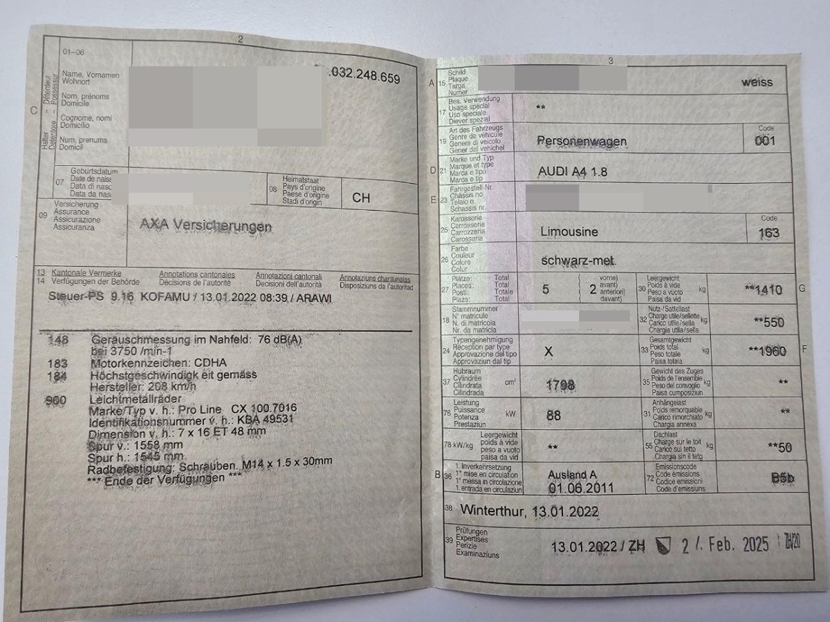 Die (vom Fahrzeugexperten) ermittelten Reparaturkosten beziehen sich auf das versicherte Ereignis. Allfällige zusätzliche, nicht versicherte Schäden/Vorschäden, sind in den Reparaturkosten nicht enthalten. Die deklarierten Ausstattungsmerkmale können von der effektiven Ausstattung abweichen.
