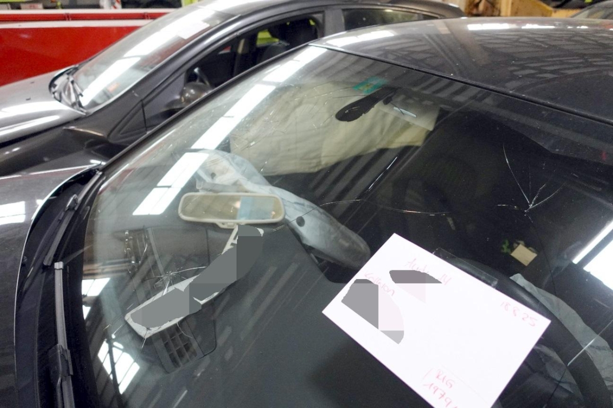 Airbag ausgelöst, Armaturenbrett, Front, Frontscheibe, Kotflügel links, Kotflügel rechts, Kühler, Kühlgitter, Motor, Radhaus vorne links, Scheinwerfer links, Scheinwerfer rechts, Schlossträger, Stosstange vorne, Türe vorne links