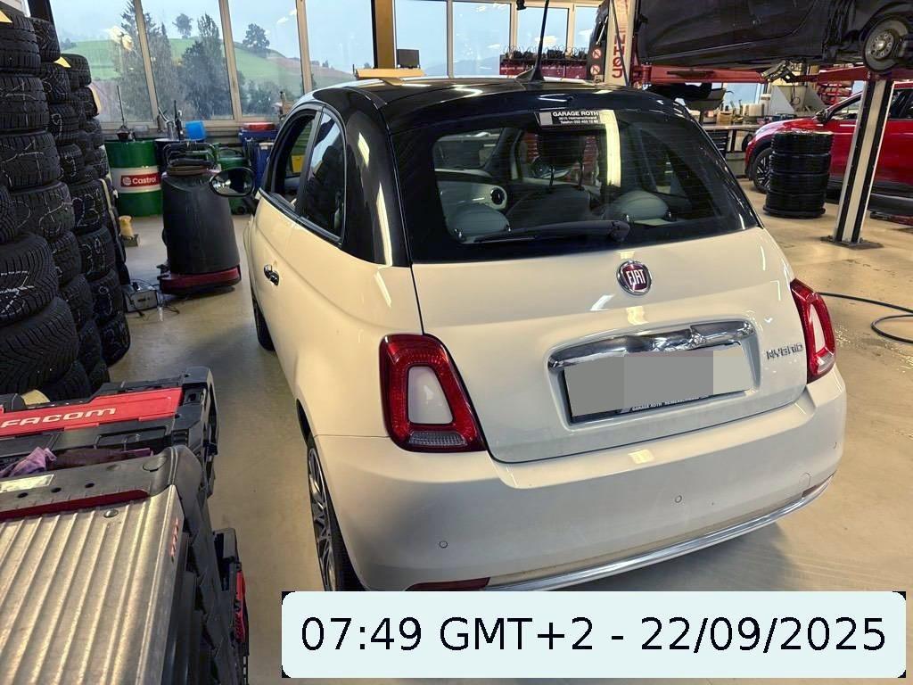 Räder: Reifendruck-Kontrollsystem (TPMS), Zentralverriegelung mit Fernbedienung, 12-Volt-Steckdose vorne, Lackierung: Uni-Lackierung, Antiblockiersystem (ABS), Elektrische Fensterheber vorne, Assist: Antriebsschlupfregelung (ASR), Feuerschutzsystem F.P.S. (Unterbrechung der Kraftstoffzufuhr bei einem Aufprall), Räder: 16″ -Leichtmetallfelgen mit Bereifung 195/45 R16, Sitze: Isofix-Befestigung für Kindersitze auf den Sitzplätzen im Fond, Assist: Bremsassistent (BAS), Airbag: Airbag Beifahrer deaktivierbar, Lenkrad: Lederlenkrad mit 8 Multifunktionstasten für die Audio- und Mobiltelefonbedienung, Bordcomputer, Dolcevita Badge, Getriebe: 6-Gang-Getriebe, Haltegriff für Beifahrer, Elektrische Servolenkung Dualdrive mit City-Funktion, Assist: Parksensoren hinten, Elektronisches Stabilitäts-Programm (ESP), Media: DAB-Radio (Digital Audio Broadcasting), Automatische Türverriegelung während der Fahrt, Garantie: Fiat 3 Jahre Garantie, unlimitierte Kilometeranzahl – inkl. Ersatzwagen, Pannenhilfe und Assisten, Klima: Klimaanlage manuell, mit Pollenfilter, Assist: Speed Limiter, Türgriffe aussen verchromt, Licht: Drittes Bremslicht, Fiat Garantie: 3 Jahre ohne Kilometerbegrenzung (ab 1. Inv.), Licht: Nebelschlussleuchte, Sitze: Sitze vorne und hinten mit Anti-Submarining Struktur, Wegfahrsperre elektronisch, Lenkrad: Lenkrad höhenverstellbar, Start/Stop-Funktion, Pedalerie mit Sollbruchstelle zum Schutz vor Beinverletzungen bei Unfällen, Aussenspiegel elektrisch verstellbar in Wagenfarbe lackiert, Assist: Cruise Control (Tempomat), Make up-Spiegel beleuchtet für Beifahrer, Media: Android Auto/Apple CarPlay, Polster: Sportsitze Stoff, Scheibenwischer vorne mit Intervall, Licht: Tagfahrlicht mit 500-LED-Signatur, Airbag: Knie-Airbag für Fahrer, Elektronischer Bremskraftverteilung EBD, Sitze: Höhenverstellbare Kopfstützen vorne, Licht: Follow me home-Lichtfunktion, Drehzahlmesser, Heckscheiben-Wisch-/Waschanlage, Airbag: Kopfairbags vorne, Media: Uconnect Touchscreenradio mit 7″-Bildschirm, USB, AUX-IN, Uconnect LIVE, Bluetooth und Audiostreaming, mit digitalem Audioempfang DAB, 2 Lautsprecher, Blinker mit Antipp-Funktion, Sicherheitsgurte vorne mit Gurtstraffern, Gurtkraftbegrenzung, Gurtschloss-Sensor, Katalysator geregelt, Fixiertes Glasdach, Airbag: Airbag Fahrer und Beifahrer inkl. Seitenairbags, Assist: Anfahrhilfe am Berg (Hill Holder), Aussentemperaturanzeige