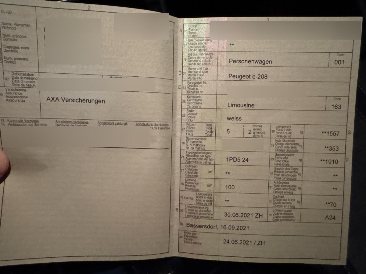 Sicherheitsgurte vorne mit pyrotechnischer Haspel mit Gurtstraffern und Kraftbegrenzern, Getriebe: Automatik-Elektroantrieb mit fester Getriebeüberstezung, Licht: Full LED-Rückleuchten, Klima: Automatische Einzonen-Klimaanlage, Höhenverstellbare Kopfstützen an Fahrer- und Beifahrersitz sowie Rücksitzen, 2 USB-Ladeanschlüsse im Fond, Aussenspiegel in Wagenfarbe, Räder: Reifenreparaturset: 12-Volt-Kompressor, Flasche mit Dichtmittel, Abschleppöse, zwei Radkeile, Kurbel für elektrische Parkbremse, Aussenspiegel elektrisch verstell-, beheiz- und anklappbar mit Zugangsbeleuchtung, Elektrische Servolenkung, Spezielles e-208-Kühlerschutzgitter mit Heissprägung in Wagenfarbe, Räder: 16-Zoll-Alufelgen ELBORN, Dekor: Armaturenbrett Slush mit Dekor in Carbonoptik und schwarzer Hochglanzstange mit Chromzierleis, Schlüsselloses Startsystem, Akustische Windschutzscheibe, Lackierung: Uni-Lackierung, On-Boad Aufladegerät 11 kW dreiphasig, Getönte hintere Seitenfenster und Heckscheibe, Heckscheibenheizung, Pausenwarner, Drehzahlmesser, Automatisches Einschalten der Frontscheibenwischer, Innenbeleuchtung: Deckenleuchten mit 3 Lampen (1 Lampe und 2 Leseleuchten) + Kofferraum, Media: Digitaler Radioempfang DAB, Bluetooth® mit kapazitivem 7″-Touchscreen HD 4 Lautsprecher vorn + 2 hinten, 4 USB-Anschlüsse, Airbag: Seitenairbag für Fahrer und Beifahrer, Assist: Erweitere Verkehrszeichenerkennung, Lenkrad: Kompaktlederlenkrad mit verchromtem Löwen und integrierten Bedienelementen, Heckschürze mit Diffusor-Optik Schwarz hochglanz, Mode 2-Ladekabel (Typ 2/J), Elektrische Parkbremse mit Berganfahrhilfe und automatischer Klemmung, Peugeot i-Cockpit 3D mit konfigurierbare digitalen 3D Head-up-Display, 3-Tasten-Fernbedienung + Standardschlüssel, Bordcomputer, Mirror Screen Funktion (Apple Carplay/Android Auto/ MirrorLink), Licht: Automatischer Start des Abblendlichts, Heckscheibenwischer, Netze an der Rückenlehne der Vordersitze, Garantie: 3 Jahre oder 80’000 km – 2 Jahre Km unbegrenzt und im 3. Jahr bis 80’000 Km begrenzt – 12 Jahre Korrosionsschutzgarantie – 3 Jahre Lackgarantie – Garantie auf die Batterie für 8 Jahre / 160’000 Km, für 70% der Ladekapazität (e-208), Licht: EcoLED-Scheinwerfer mit LED-Tagfahrleuchten, Lenkrad: Lenkrad in Höhe und Weite verstellbar, Assist: Geschwindigkeitsregler/-begrenzer, Innenspiegel automatisch abblendbar, Fensterheber vorn und hinten elektrisch mit Impulssteuerung und Einklemmschutz, Automatische Verriegelung aller Türen beim Fahren, Airbag: Fahrer und Beifahrer, Elektronische Stabilitätskontrolle (ESP) mit Traktionskontrolle (ASR), ABS (Antiblockiersystem) EBV (Elektronischer Bremskraftverteiler), Notbremsassistent, Dynamische Stabilitätskontrolle (DSC) und Anhängerstabilitätssystem, Sitze: Fahrersitz höhenverstellbar, Licht: Drittes Bremslicht, Sitze: Versenkbare Rücksitzbank (Reihe 2) 2/3 – 1/3, Innenraum und Dachhimmel Grau, Polster: Stoff-/Kunstleder-Ausstattung, Sicherheitsgurte hinten, mit progressiven Kraftbegrenzern, Airbag: Window-Kopfairbags, Befestigung für zwei Kindersitze nach ISOFIX-Standard auf den Rücksitzen, inklusive Top Tether, Räder: Indirekte Unterdruckerkennung, Licht: Nebelschlussleuchte, Hohe Konsole mit integrierter Armlehne, 2 USB-Anschlüsse hinten und Fahrmodus-Wahlschalter, Wegfahrsperre elektronisch