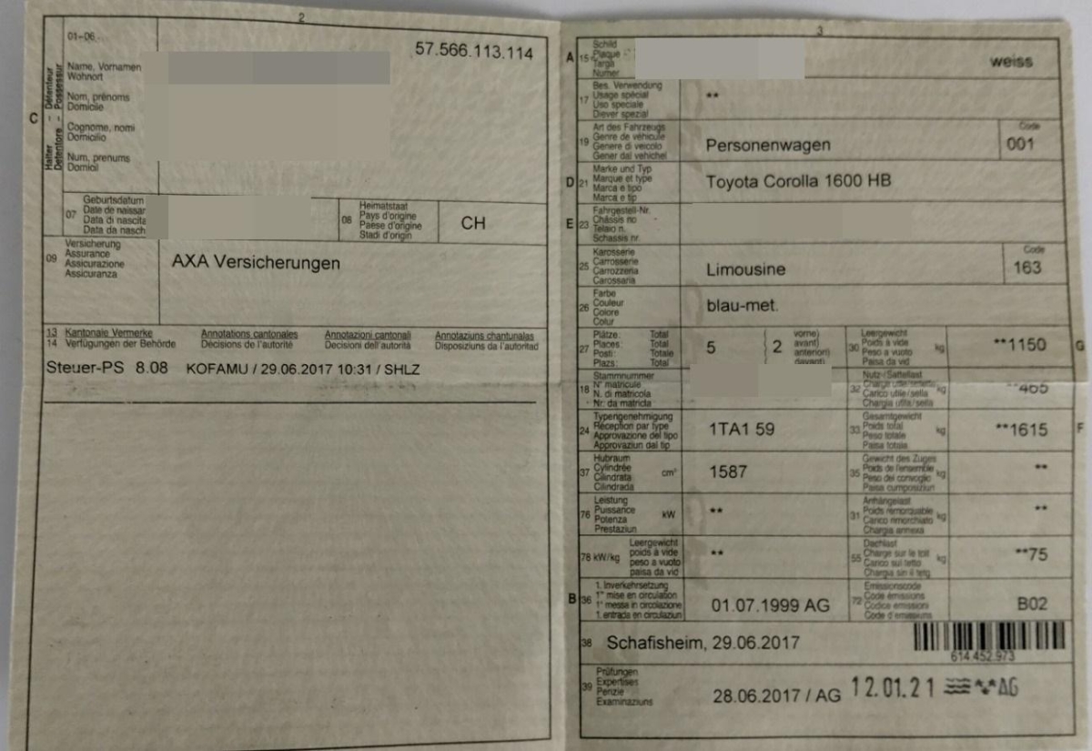 Die (vom Fahrzeugexperten) ermittelten Reparaturkosten beziehen sich auf das versicherte Ereignis. Allfällige zusätzliche, nicht versicherte Schäden/Vorschäden, sind in den Reparaturkosten nicht enthalten. Die deklarierten Ausstattungsmerkmale können von der effektiven Ausstattung abweichen.