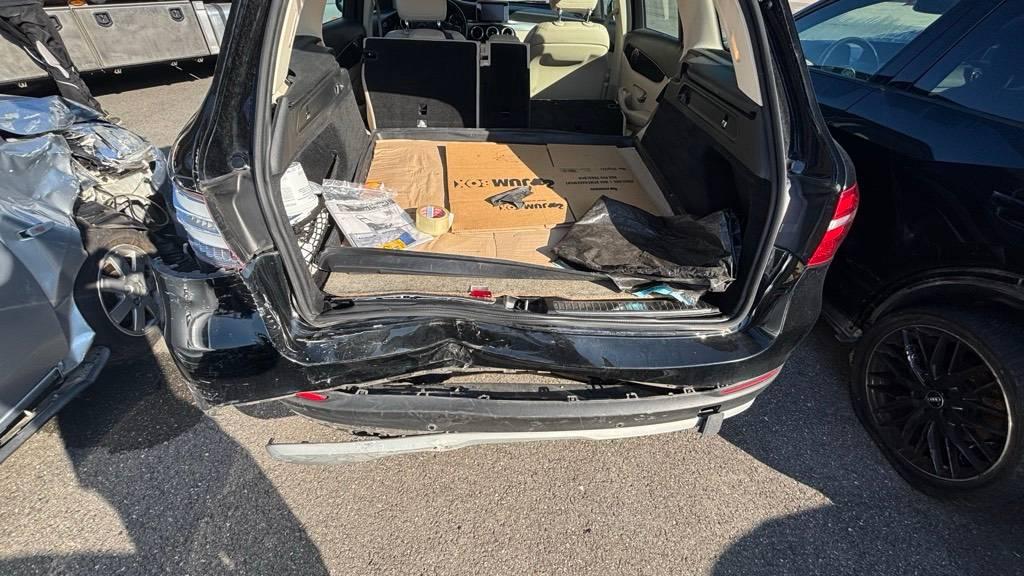 Auspuffanlage, Auspufftopf, D-Säule, Diverse Gebrauchspuren, Diverse Gebrauchspuren, Gurtstraffer ausgelöst, Heck, Heck links, Heck rechts, Heckblech, Heckdeckel, Hinterachse, Interieur, Kabelstrang, Kofferraumboden, Kofferraumboden, Rad hinten links, Radhaus hinten links, Radhaus hinten rechts, Rücklicht links, Rücklicht rechts, Seitenwand links, Seitenwand rechts, Stossstange hinten, Türe hinten links