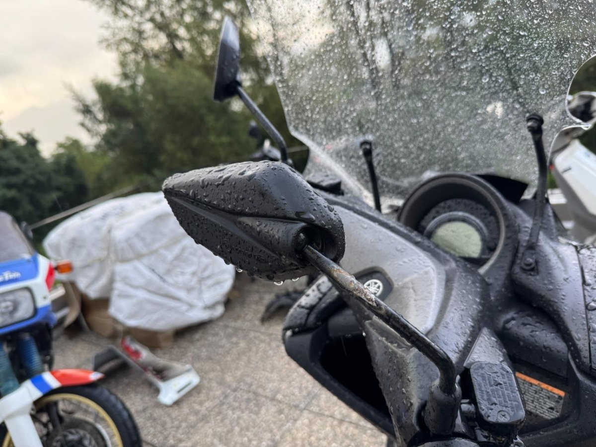 Auspufftopf, Aussenspiegel rechts, Front, Fussraster rechts, Gabelholm, Griff rechts, Lenkanschlag, Lenker, Lenkschloss, Rad vorne, Rahmen, Scheinwerfer, Schutzblech vorne, Seite rechts, Topcase, Verschalungen rechts, Verschalungen vorne, Windschutzscheibe
