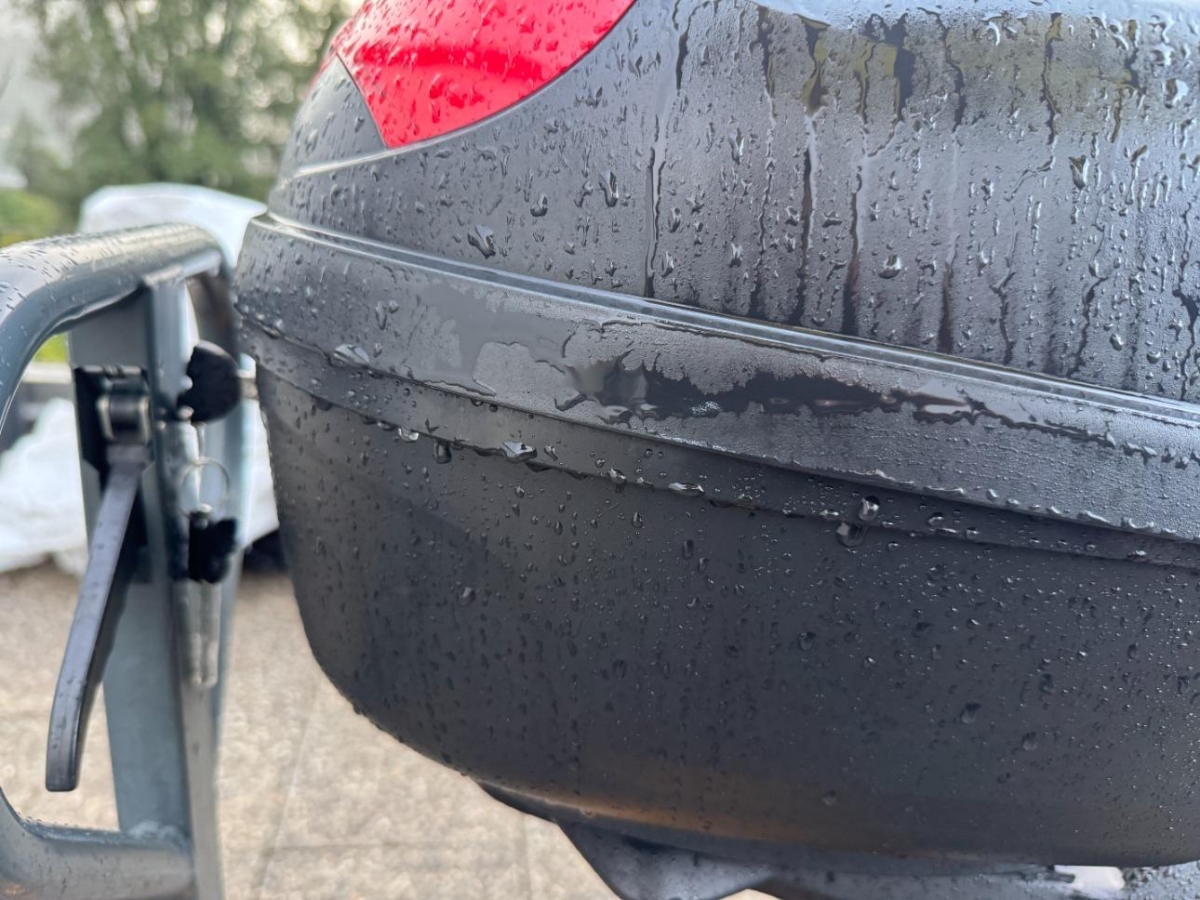 Antrieb, Armaturen, Auspuffkollektor, Auspufftopf, Aussenspiegel links, Diverse Anbauteile, Fussraster links, Getriebe, Griff links, Heck, Heckverkleidung, Kabelstrang, Kupplungsgehäuse, Kühler, Motor, Motorgehäuse, Rad hinten, Rücklicht, Rücklicht links, Schutzblech hinten, Schwinge, Seite links, Sitz, Tank, Topcase, Verschalungen hinten, Verschalungen links, Zündschloss