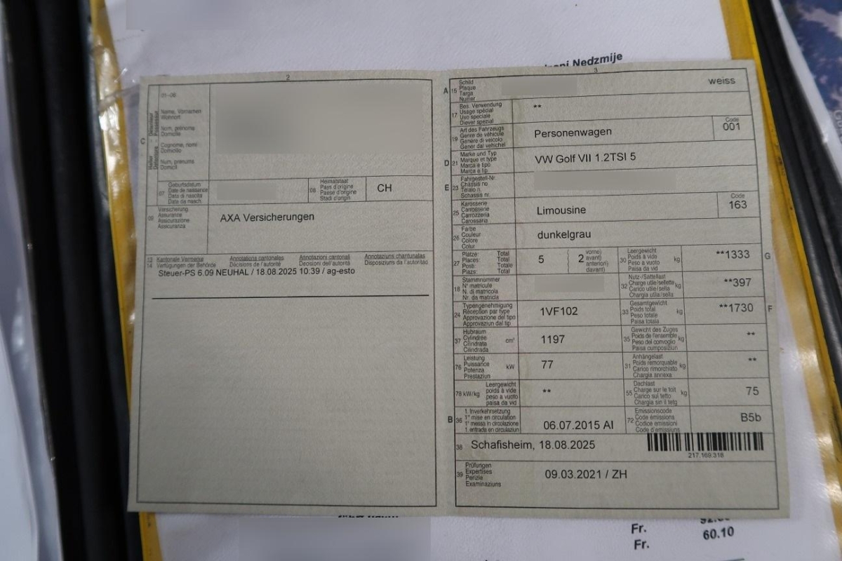 Lackierung: Uni-Lackierung, Wärmeschutzverglasung, Tankdeckel-Entriegelung von innen, Leseleuchten vorne, 3-Punkt-Sicherheitsgurte auf allen Plätzen, Lichtwarnsummer, Scheibenwischer vorne mit Intervall, Lenkrad: Lenkrad längs- und höhenverstellbar, Teppichfussmatten vorne und hinten, Ausstiegsleuchten in den Türen, Aktive Kopfstützen, Grün getönte Scheiben, Elektronisches Stabilitäts-Programm ESP, Bremsassistent (BAS), Tageskilometerzähler, Sitze: Vordersitze mit höheneinstellung, Seitenairbag für Fahrer und Beifahrer, Wegfahrsperre elektronisch, Aussenspiegel schwarz, Elektrische Fensterheber vorne + hinten, Aussenspiegel rechts und links beheizt und elektrisch verstellbar, asphärisch gewölbtes Spiegelglas, Stahlräder 15J, Media: Multifunktionsanzeige, 3 Kopfstützen hinten, Zentralverriegelung mit Fernbedienung, Sitze: Rücksitzlehne geteilt abklappbar, Stopp-/Start-System, Gurtkontrolle, Heckscheiben-Wisch-/Waschanlage mit, Tagfahrlicht, Ablagefach im Dachbereich, Heckscheibenheizung, 2 Schlüssel mit Fernbedienung, Licht: Nebelschlussleuchte, Licht: Drittes Bremslicht, Gurtstraffer vorne, Drehzahlmesser, Räder: Reifenkontrollanzeige, Ladeboden variabel, Make up-Spiegel rechts, Handschuhfach beleuchtet, klimatisiert und abschliessbar, Antiblockiersystem (ABS), Airbag: Airbag Beifahrer deaktivierbar, Klima: Pollenfilter (Staubfilter), Radzierblenden, Wartungsintervall-Anzeige, Polster: Stoff-Ausstattung, Laderaumabdeckung, Getriebe: 6-Gang-Getriebe, Aussentemperaturanzeige, Cupholder vorne und hinten, Elektronische Differentialsperre (XDS), Auto-Hold-Funktion, Stossstangen in Wagenfarbe, Reifenreparatur-Set mit Kompressor, Wassertemperaturanzeige, Türgriffe aussen in schwarz, Kopfstützen hinten abklappbar, Klimaanlage halbautomatisch Climatic, Kombi-Instrumente mit Chromzierringen, Knie-Airbag für Fahrer, Innenspiegel abblendbar, Heckspoiler, ISOFIX Kindersitzvorrichtung, Ablagen in den Türen, Servolenkung geschwindigkeitsabhängig, Radiovorbereitung, Antenne und Entstörung, Radiosystem Composition Touch, Blinker in Aussenspiegel, Höhenverstellbare Gurten vorne, Bremsenergie-Rückgewinnung, Elektronische Parkbremse, Innenlicht-Abschaltverzögerung, Katalysator geregelt, Make up-Spiegel links, Airbag: Airbag Fahrer und Beifahrer, Airbag: Window-Kopfairbags, Kofferraumbeleuchtung, Antriebsschlupfregelung (ASR)