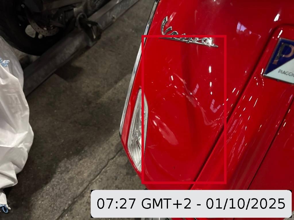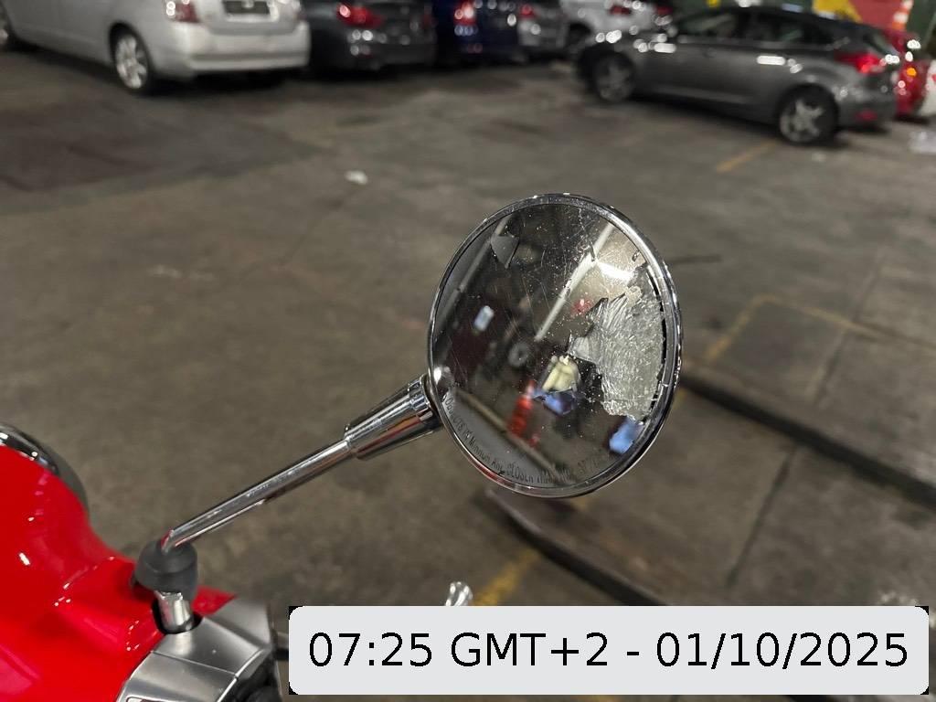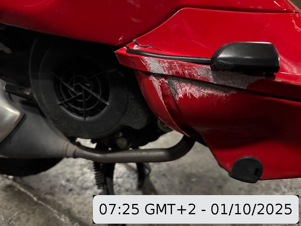 Auspufftopf, Aussenspiegel links, Aussenspiegel rechts, Diverse Anbauteile, Front, Fussraster rechts, Heck, Heckverkleidung, Lenkanschlag, Lenker, Lenkschloss, Rad vorne, Rahmen, Schutzblech vorne, Seite rechts, Sitz, Verschalungen hinten, Verschalungen rechts, Verschalungen vorne