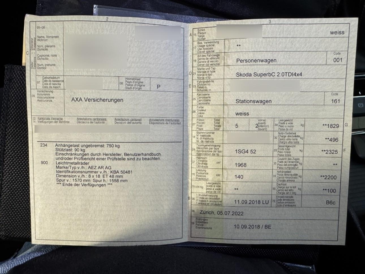 Partikelfilter und Oxydationskatalysator, Airbag: Window-Kopfairbags, Fernlichtregulierung Light Assist, Pedalerie mit Aluminiumauflage, Verkehrszeichenerkennung RSI (Road Sign Information System), Assist: Elektronische Differentialsperre (EDS), Media: DAB+ (Digital Audio Broadcasting), Sitze: Durchlademöglichkeit in der Rücksitzbank inkl. Mittelarmlehne hinten, Allradantrieb permanent, Pollenfilter (Staubfilter), Schliess- und Startsystem KESSY (Keyless Access), Getriebe: Sequentielles 7-Gang-Getriebe mit Automatikfunktion, Leder-Multifunktionslenkrad im 3-Speichen-Design mit Schaltpaddles, Licht: LED-Tagfahrlicht, Fernlichtregulierung DynamicLightAssist, inkl. Spurhalteassistent Lane Assist und Totwinkel-Assistent, Scheibenwaschdüsen beheizt, Ladeboden variabel, Airbag: Airbag Fahrer und Beifahrer, Aussenspiegel rechts und links beheizbar und elektrisch verstell- / einklappbar mit Einstiegsbeleuchtung, ISOFIX Kindersitzvorrichtung, Heckklappe elektrisch ”Virtual Pedal”, Spurhalteassistent, Aussenspiegel in schwarz, Airbag: Seitenairbags hinten, Assist: Speedlimiter, Media: SmartLink, Care Connect 3 Jahre, Antiblockiersystem (ABS), Vordersitze elektrisch verstellbar, Fahrersitz mit Memoryschaltung, Lendenwirbelstützen elektrisch, Halbautomatische Gepäckraumrollo- Entriegelung mit Multifunktionsbox, Lenkrad: Sportlenkrad, Assist: Berganfahrassistent, Teppichfussmatten vorne und hinten, LED Plus Paket (Ambiente- und Fussraumbeleuchtung vorne und hinten), Assist: Rückfahrkamera, Fahrwerk: Progressivlenkung, Räder: Leichtmetallräder 8,0 J x 19″ VEGA, anthrazit mit polierter Oberfläche 235/40 R19, Airbag: Seitenairbags und Kopfairbags vorne, Bi-Xenon-Scheinwerfer inkl. Reinigungsanlage, Navigationssystem COLUMBUS, Elektrische Fensterheber vorne + hinten, Elektronische Parkbremse, Räder: Pannenset, Fahrprofilauswahl, Licht: Nebelscheinwerfer mit Cornering-Funktion, 3-Punkt-Sicherheitsgurte auf allen Plätzen, Stossstangen in Wagenfarbe, Regensensor für Scheibenwischer vorne, Räder: Reifendruck-Kontrollanzeige, Abblendlichtausschaltverzögerung 'Follow me home’, Sitze: Vordersitze heizbar, Assist: Müdigkeitserkennung, Cargo Organizer, 3-Zonen-Klimatisierungsautomatik, Gurtkontrolle, Parksensoren vorne und hinten, Dachreling schwarz, Antriebsschlupfregelung (ASR), Regenschirmfach inkl. Regenschirm, Dunkel getönte Scheiben (SunSet), Apple CarPlay, Parkassistent, Scheinwerfer-Waschanlage, Abfallbehällter, Sicherheitstrennnetz oder /-gitter im Gepäckraum, Soundsystem, Ablagen im Kofferraum, Maxi-DOT Display farbig, Sitzbezüge in Alcantara, Heckscheiben-Wisch-/Waschanlage mit, Airbag: Knie-Airbag für Fahrer, Mobiltelefon Freisprecheinrichtung Bluetooth, Proaktives Insassenschutzsystem, Airbag: Airbag Beifahrer deaktivierbar, LED Heckleuchten, High, Einstiegsschienen, Elektronisches Stabilitäts-Programm (ESP), Sitze: Sportsitze, Auspuffblende, verchromt, Geschwindigkeitsregelanlage (Tempomat) mit Distanzkontrolle (ACC) bis 160 km/h, inkl.Front Assistant und City-Notbrems., Dekoreinlagen Carbon, Dekoreinlagen, Aussentemperaturanzeige, Sitze: Rücksitzlehne mit Fernbedienung aus Kofferraum, LED Taschenlampe im Kofferraum,abnehmbar, Assist: Totwinkel-Assistent, Sportfahrwerk