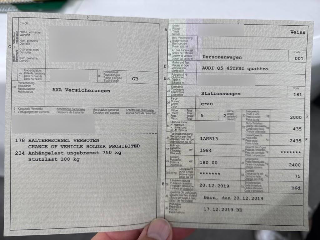 Fahrzeugausweis Vorhanden