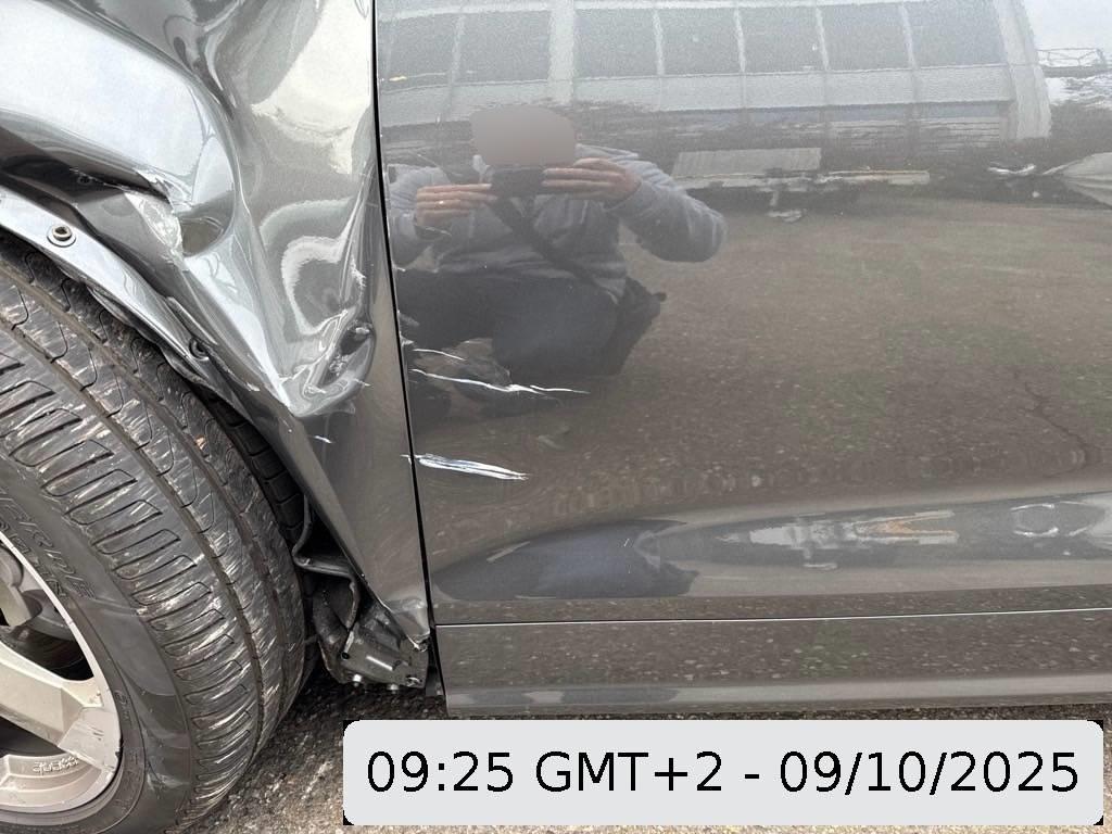 Antriebswelle, Diverse Anbauteile, Diverse Gebrauchspuren, Federbein vorne links, Front, Front links, Kabelstrang, Klimakühler, Kotflügel links, Kühler, Kühlgitter, Ladeluftkühler, Lenkung, Längsträger vorne links, Motorhaube, Querträger, Rad vorne links, Radaufhängung vorne links, Radhaus vorne links, Scheinwerfer links, Scheinwerfer rechts, Schlossträger, Schweller links, Stosstange vorne, Türe vorne links, Vorderachse