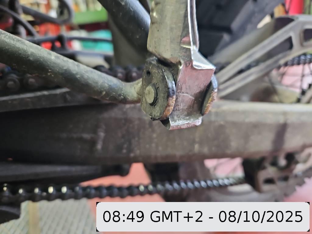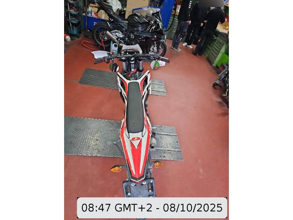 Antrieb, Diverse Anbauteile, Fussraster links, Fussraster rechts, Getriebe, Heck, Kabelstrang, Kupplungsgehäuse, Kühler, Lenkanschlag, Motor, Rad hinten, Rad vorne, Rahmen, Rücklicht, Schwinge, Tank, Zündschloss