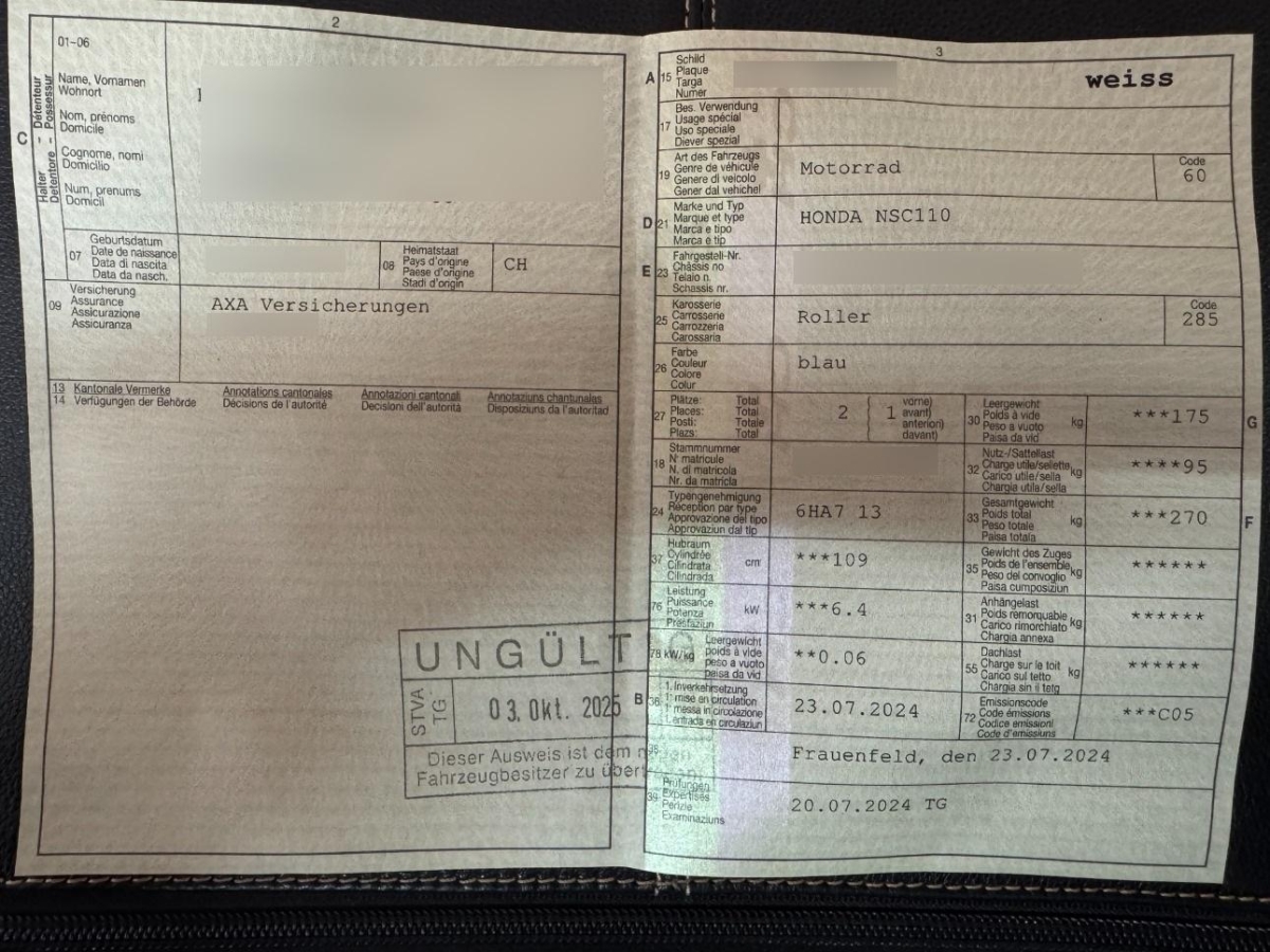 Die (vom Fahrzeugexperten) ermittelten Reparaturkosten beziehen sich auf das versicherte Ereignis. Allfällige zusätzliche, nicht versicherte Schäden/Vorschäden, sind in den Reparaturkosten nicht enthalten. Die deklarierten Ausstattungsmerkmale können von der effektiven Ausstattung abweichen.