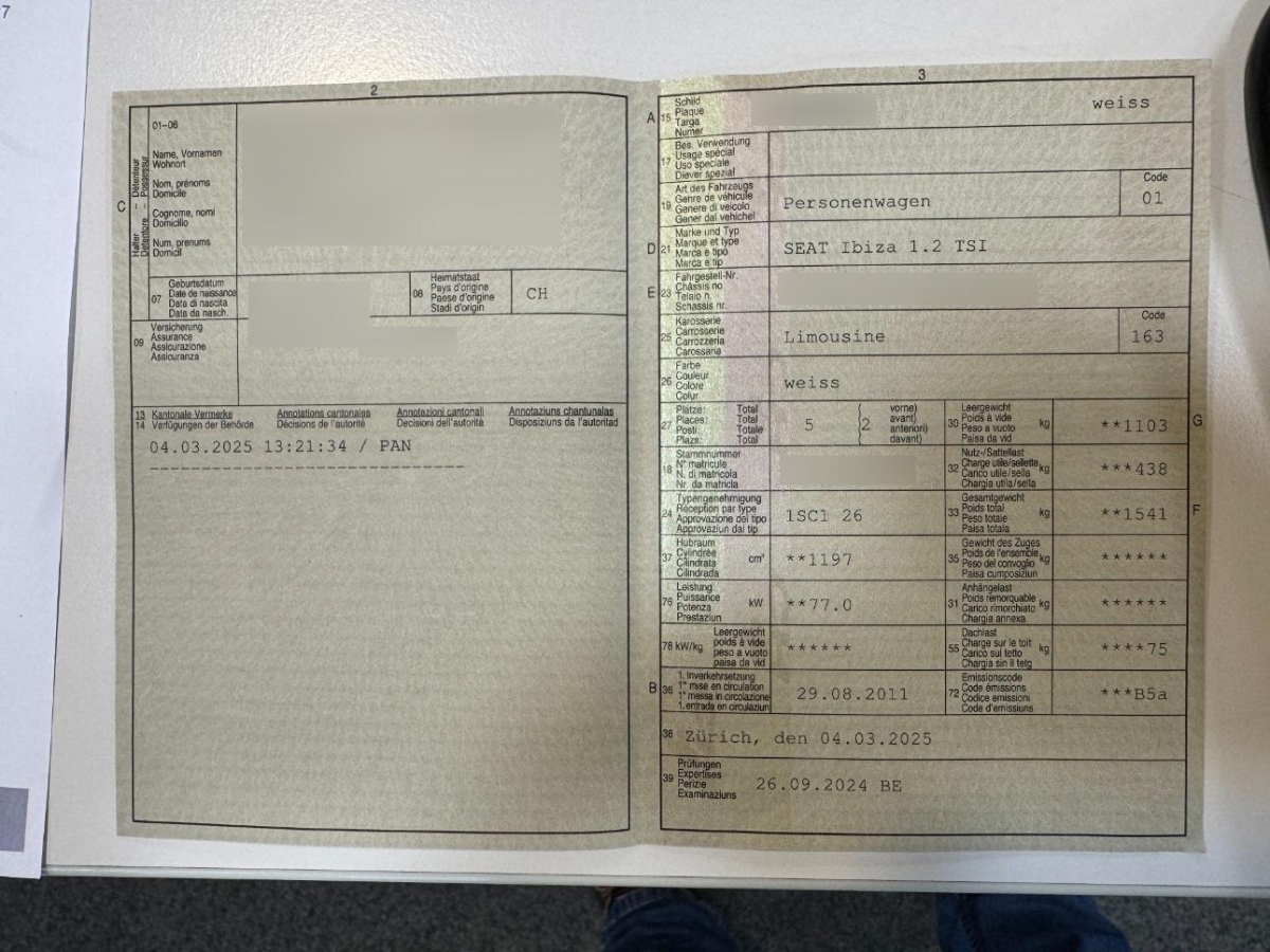 | Fahrzeugausweis | Vorhanden |