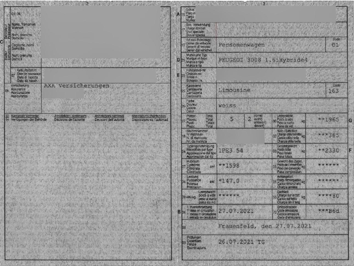 Automatische Türverriegelung während der Fahrt, Aussenspiegel elektrisch verstell-, beheiz- und anklappbar, mit LED-Zugangs- beleuchtung, Verchromter Schachbrett-Kühlergrill, Befestigungen für drei Kindersitze – nach der Norm ISOFIX am Beifahrersitz vorn und den hinteren seitlichen Plätzen, Gangempfehlung, Innendekoration (Leisten an Armaturentafel und Türverkleidungen, Konsolenzierleiste) verchromt, Antiblockiersystem (ABS) mit elektronischem Bremskraftverteiler (EBV) und Notbremsassistent (AFU), HYBRID-Logo auf den Kotflügeln und auf der Kofferraumklappe, Nebelschlussleuchte, Optimierte höhenverst. Sicherheitskopfstützen am Fahrer- und Beifahrersitz vorn sw. an den Rücksitze, 3-Punkt-Sicherheitsgurte – hinten mit Aufrollvorrichtung (x3), Gurtstraffern und Gurtkraftbegrenzung auf den seitlichen Plätzen, Batterie-Fernladekontrolle, Stossfängerblende hinten verchromt, Lenkrad: Lenkrad verstellbar, 12 Volt-Steckdose im Laderaum, Elektrische Parkbremse mit Berganfahrhilfe, Peugeot i-Cockpit: Head-up-Display, kapazitiver 10″-Touchscreen und Kompaktlenkrad mit Multifunktion, Höhenverstellbare 3-Punkt-Sicherheitsgurte vorn mit Aufrollvorrichtung mit Gurtstraffern und Gurtkraftbegrenzung, Airbag: Vorhangairbags vorne und hinten, Edelstahlzierleisten am Dachbogen, Media: 3D-Navigation mit Spracherkennung, 10-Zoll kapazitiver Touchscreen HD – europäisches Kartenmaterial, Zentralverriegelung mit Fernbedienung, Getönte hintere Seitenfenster und Heckscheibe, Elektrische Servolenkung, 12-Volt-Steckdose hinten, Beheizbare Heckscheibe mit aufgedruckten Antennen, Sitze: Umklappbare Rücksitzbank 1/3 – 2/3 (Bedienelemente im Kofferraum) mit Armlehne und Skiklappe, Energieladeklappe auf dem linken Heckflügel, mit Ladezustandsanzeigeleuchte, Assist: Geschwindigkeitsbegrenzer, USB-Anschluss (in der Anschlusszone), Klima: Zweizonen-Klimaautomatik mit Belüftungsdüsen im Fond, Edelstahlzierleisten an den Schutzvorrichtungen im unteren Türbereich, Schalldämmende Verbundglasscheiben vorn, On-Board-Charger 3,7 kW 1-phasig, Deckenleuchte vorn mit Leselampen (x2) und Deckenleuchte hinten mit zeitverzögerter Abschaltung, Getriebe: 8-Stufen-Automat sequentiell, Elektrische Fensterheber vorn und hinten mit Impulssteuerung und Einklemmschutz, Akustisches Fussgänger-Warnsignal, Assist: Verkehrszeichenerkennung, Drehzahlmesser, Katalysator geregelt, Lackierung: Metallic-Lackierung Blau Célèbes, Räder: Reifenreparaturset: 12-Volt-Kompressor, Flasche mit Dichtmittel, Abschleppöse, zwei Radkeile, Kurbel für elektrische Parkbremse, Türgriffe aussen in Wagenfarbe, Assist: Spurassistent, Media: Radio mit DAB – bi-tuner MP3-kompatibel, und Bluetooth-Konnektivität (Audiostreaming, Freisprecheinrichtung) – Bedienelemente am Lenkrad – 6 Lautsprecher – 10-Zoll kapazitiver Touchscreen, Dekor: Vordere Kotflügeleinsätze verchromt, Kopfstützen hinten höhenverstellbar, Heckscheibenwischer mit automatischer Aktivierung beim Einlegen des Rückwärtsgangs, Kindersicherung an den hinteren Fenstern, Beleuchtete Schminkspiegel, Schutzleiste des vorderen Stossfängers Grau Metallic, Garantie: 3 Jahre Garantie auf Teile, Arbeit und Peugeot Assistance – 2 Jahre Km unbegrenzt und im 3. Jahr bis 80’000 Km begrenzt – ausser Verschleissteile – 12 Jahre Korrosionsschutzgarantie – 3 Jahre Lackgarantie, Dynamische Stabilitätskontrolle (ESP) mit elektronischer Antriebsschlupfregelung (ARS), Rahmenloser lichtempfindlicher Innenspiegel, Airbag: Seitenairbags auf der Fahrer- und Beifahrerseite vorn, Garantie: Garantie auf die Batterie für 8 Jahre / 160’000 Km – für 70% der Ladekapazität (je nachdem welche Bedingung zuerst eintritt) auf HYBRID & HYBRID4, Reifendruckkontrollsystem, Verchromte Toggle Switches (Klaviertasten zur Aktivierung der Funktionen des Touchscreens), Fester Kofferraumboden mit Gelenk für den Zugang zum Staufach des Ladekabels, Mode 2-Ladekabel (Typ 2/J), Licht: Drittes Bremslicht LED, Klima: Ferngesteuerte Fahrzeugvorwärmung/Klimatisierung, Wegfahrsperre elektronisch, Kopfstützen vorne höhenverstellbar, Mirror Screen Funktion (Apple Carplay/Android Auto/ MirrorLink), Bordcomputer, 12-Volt-Steckdose vorne, Fahr-Modi zur Auswahl Electric, Hybrid, Sport, 4WD, Hill Assist Descent Control, Fahrzeitalarm, Scheibenwischer vorn mit Waschanlage Magic Wash, Airbag: Adaptive Frontairbags auf der Fahrer- und Beifahrerseite (auf der Beifahrerseite mit Schlüssel deaktivierbar), Aussenspiegelgehäuse in Schwarz Perla Nera, Dachreling in Aluminium, Dekor: Armaturentafel mit Ziernähten, Dekor: Armaturentafel-Dekors und Türverkleidungen Alcantara, Dekor: Umrandung der Seitenfenster aus Edelstahl, Edelstahltürschwellen vorn, Fensterhebersteuerungen mit Chromeinlagen, GT-Kühlergrill mit aufrüstbarem Chromdesign, Innenraum und Dachhimmel Schwarz Mistral, Lackierung: Dach Black Diamond (Dach Schwarz Perla Nera), Lenkrad: Perforiertes Naturlederlenkrad mit verchromten Ringen und GT-Schriftzug, Media: 2 USB-Schnittstellen hinten, Media: Hi-Fi-System Premium FOCAL – Französischer Akustikkomfort, Paket: Ambienbeleuchtung – Vordere Deckenleuchte mit LED-Ambientbeleuchtung – LED-Beleuchtung in den Fussräumen und Türstaufächern vorn und in den Getränkehalter vorn, Paket: Driver Sport Pack – satterer, sportlicherer Motorsound – schärferes Ansprechverhalten des Gaspedals – sportlichere Servolenkung, Sport-Schaltung – Anzeige der Fahrzeugparameter im Head-up-Digitalinstrument möglich, Paket: Paket City 2, Paket: Paket Drive Assist Plus, Pedale und Fuss-Stütze in Aluminium, Polster: Alcantara-/Kunstleder-Ausstattung, Räder: 19-Zoll-Leichtmetallfelgen "Boston" – zweifarbig, glanzgedreht Schwarz Onyx matt – 225/50R19, Sitze: Beifahrersitz umklappbar, Stilistische Auspuffendrohre, verchromt, Verbreiterte angesetzte schwarze Radkästen
