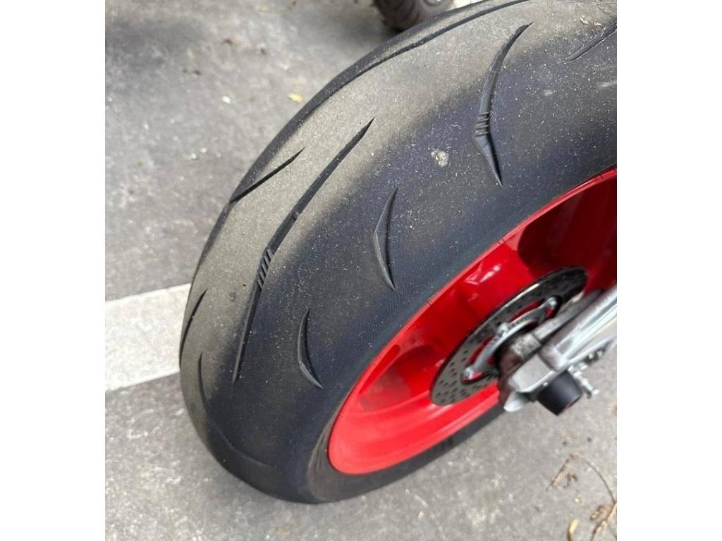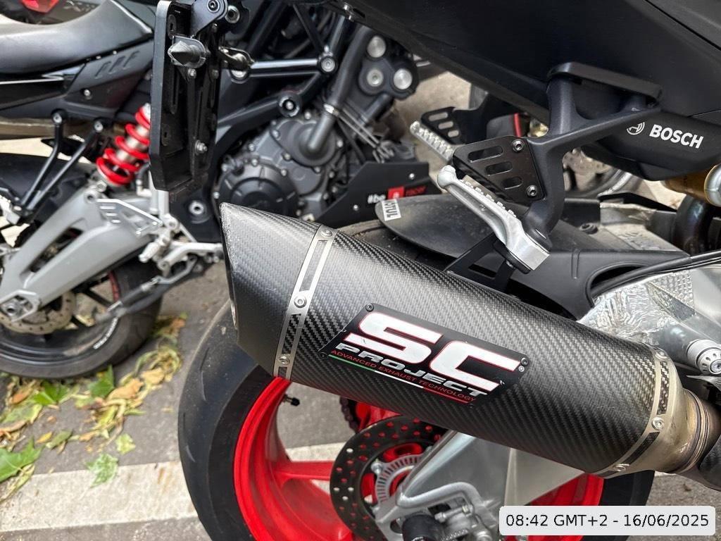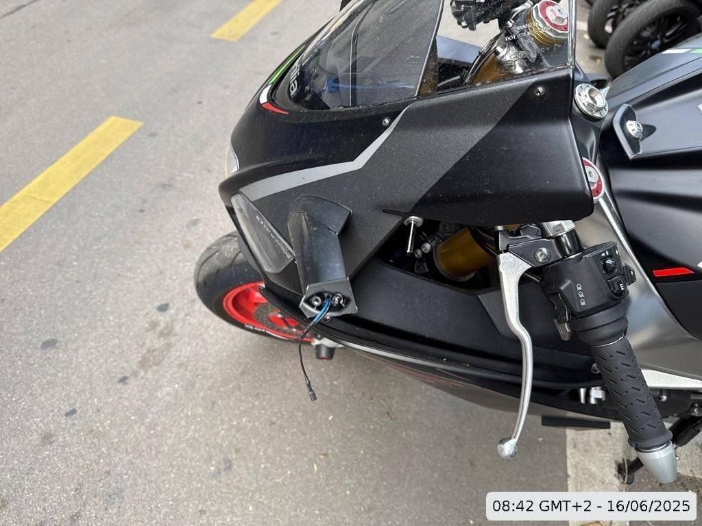 Auspufftopf, Aussenspiegel links, Front, Fussraster links, Fussraster rechts, Gabelholm, Griff rechts, Kupplungsgehäuse, Rad vorne, Rahmen, Scheinwerfer, Schutzblech vorne, Verschalungen rechts, Verschalungen vorne
