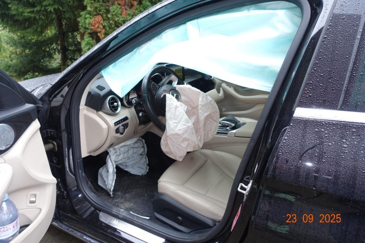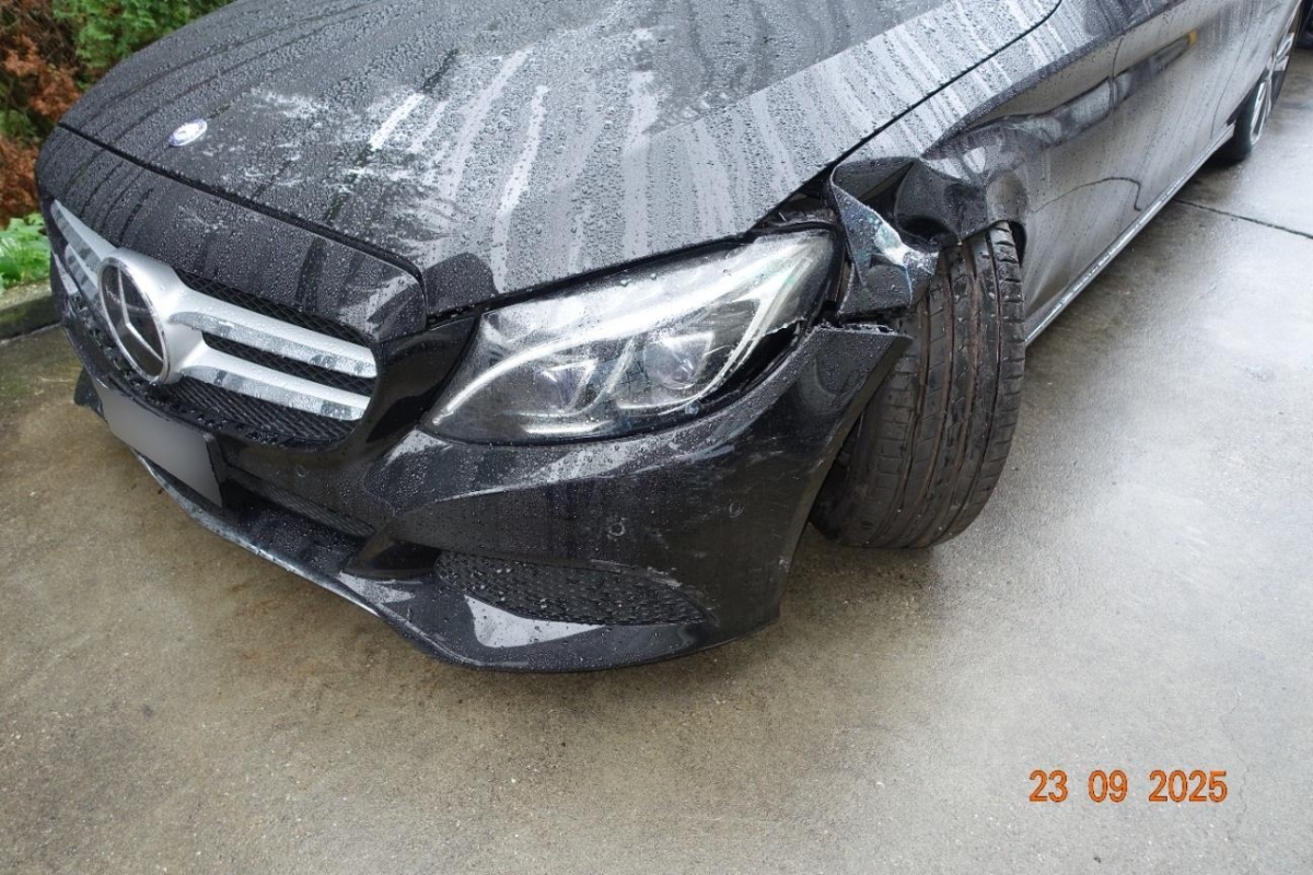 Airbag ausgelöst, Diverse Anbauteile, Federbein vorne links, Front, Front links, Frontblech, Gurtstraffer ausgelöst, Kotflügel links, Kühlgitter, Lenkung, Längsträger vorne links, Motorhaube, Rad vorne links, Radaufhängung vorne links, Radhaus vorne links, Scheinwerfer links, Stosstange vorne, Vorderachse