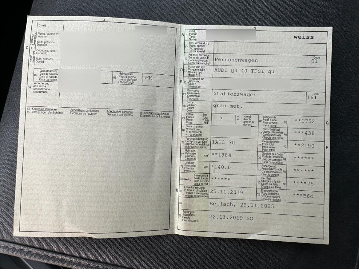Dachreling schwarz, Fahrwerk: Sportfahrwerk, Lenkrad: Leder-Multifunktionslenkrad im 3-Speichen-Design, Elektronisches Stabilitäts-Programm (ESP), Garantie: 2 Jahre ohne Kilometerbegrenzung (ab 1. Inv.), Katalysator geregelt, Media: MMI Radio plus, Media: 4 Lautsprecher, Wegfahrsperre elektronisch, Innenraumbeleuchtung, Licht: Nebelschlussleuchte, 4 Leichtmetallfelgen 18J mit Pneu, Räder: Reifenreparatur-Set (Tire Fit), Audi pre sense front, Assist: Berganfahrassistent, Heckscheibenheizung, Audi pre sense basic, Ladekantenschutz, Dekoreinlagen, Innenspiegel abblendbar, Media: Bluetooth-Schnittstelle, Klima: Pollenfilter (Staubfilter), Servolenkung, Einstiegsschienen beleuchtet mit Logo, Airbag: Window-Kopfairbags, Airbag: Airbag Beifahrer deaktivierbar, Geschwindigkeitsbegrenzer, ISOFIX-Befestigungspunkte für Kindersitz an den äusseren Rücksitzen, Sequentielles 7-Gang-Getriebe mit Automatikfunktion, Airbag: Airbag Fahrer und Beifahrer, Scheibenwischer vorne mit Intervall, Allradantrieb permanent, Aussenspiegel rechts und links beheizbar und elektrisch verstellbar, Aussentemperaturanzeige, Rücksitzlehne geteilt abklappbar, Sitze: Normalsitze, Verbandmaterial und Warndreieck, Drehzahlmesser, Getönte Scheiben, Teppichfussmatten vorne und hinten, ABS mit ASR und EDS, Polster: Stoff-Ausstattung, Wärmeschutzverglasung, Dachhimmel, Audi connect Notruf, Assist: Spurverlassenswarnung, Modellbezeichnungen (Logo & Model), Kühlergrilleinfassungen, Voll-LED-Scheinwerfer, Mittelarmlehne vorn in Kunstleder schwarz mit Kontrastnaht in Rot, Digital Uhr, Licht-/ Regensensor mit Akustikfrontscheibe, Licht: Drittes Bremslicht, Heckscheiben-Wisch-/Waschanlage, Fahrer-Informationssystem, Höhenverstellbare Gurten vorne, 3-Punkt-Sicherheitsgurte auf allen Plätzen, Make up-Spiegel links, Elektrische Heckklappe, Make up-Spiegel rechts, Elektrische Kindersicherung, Klima: Klimaanlage, Seitenairbag für Fahrer und Beifahrer, Gurtkontrolle, Assist: Spurwechselwarnung, Media: Digitaler Radioempfang (DAB), Licht: LED-Tagfahrlicht, Einstiegsschienen verchromt, Stopp-/Start-System, Bordwerkzeug, Aussenspiegel elektrisch einklappbar, Räder: Reifendruck-Kontrollanzeige