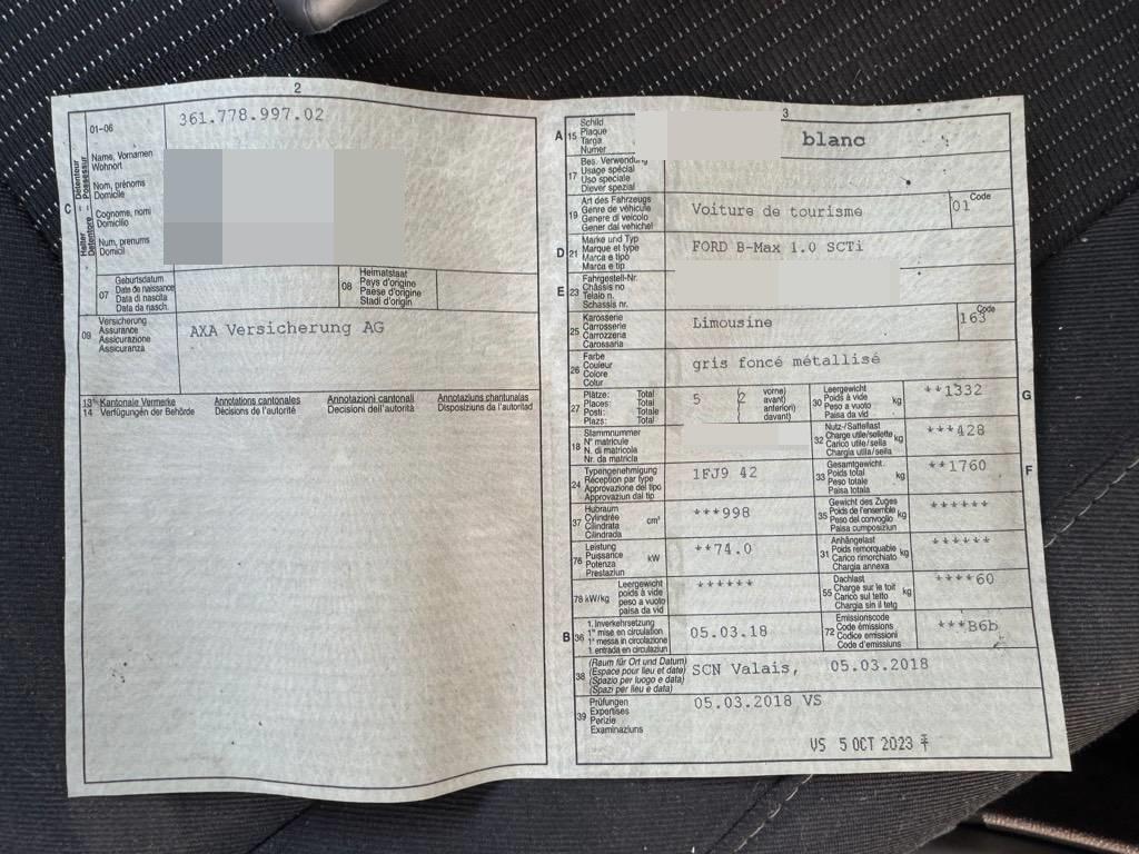 Lackierung: Uni-Lackierung, Beleuchtetes Handschuhfach, Einstellbare Lendenwirbelstütze für den Fahrersitz, Licht: Nebelscheinwerfer, Zentralverriegelung mit Fernbedienung und Globalschliessung, Licht: Drittes Bremslicht, Airbag: Window-Kopfairbags, Leichtmetallräder im 10-Speichen-Design 16J, Licht: Halogenscheinwerfer, Brillenablage, Elektrischer Zuheizer, Kühlergrill lackiert, Aussenspiegel rechts und links beheizbar und elektrisch verstellbar, Airbag: Beifahrer deaktivierbar, Räder: TPMS Reifendrucküberwachungssystem, Blinker in Aussenspiegel, Elektronisches Sicherheits- und Stabilitätsprogramm (ESP), Klima: Klimatisierungsautomatik, Gurtstraffer mit Gurtkraftbegrenzer, Wegfahrsperre elektronisch, 3-Punkt-Sicherheitsgurte auf allen Plätzen, Licht: LED-Tagfahrlicht, Assist: Bremsassistent (BAS), 2. Schlüssel mit Funkfernbedienung, Mittelkonsole mit Ablagefach, Lenkrad: Lenkrad längs- und höhenverstellbar, Elektronische Traktionskontrolle (ASR/TCS), Fussraumbeleuchtung vorne, Airbag: Knie-Airbag für Fahrer, Heckscheiben-Wisch-/Waschanlage mit, Seitenfenster-Zierleisten verchromt, Beifahrerlehne umklappbar, Elektrische Fensterheber vorne, Berganfahrhilfe, 12-Volt-Steckdose hinten, Sitze: Mittelarmlehne hinten, Ambientebeleuchtung, Licht: Licht- und Regensensor, Airbag: Seitenairbag für Fahrer und Beifahrer, Getriebe: 5-Gang-Getriebe, Klima: Pollenfilter (Staubfilter), Assist: Tempomat mit Geschwindigkeitsbegrenzer, Fahrersitz manuell einstellbar, Stopp-/Start-System, Schiebetüre links und rechts, Aussenspiegel und Türgriffe in Wagenfarbe, Kartentaschen an den Rückenlehnen, ISOFIX Kindersitzvorrichtung, Airbag: Fahrer und Beifahrer, Katalysator geregelt, Leuchtweitenregulierung von innen, Lenkrad und Schalthebelgriff in Leder, ABS, EBD elektronische Bremskraftverteilung, 3 Kopfstützen hinten, Licht: Nebelschlussleuchte, Polster: Stoff-Ausstattung, Audiosystem 2 mit DAB+ (Radio/CD, Fernb. 6LS, Aux-In & USB, SYNC Notfallassistent Bluetooth Freisprecheinrichtung, Sitze: Mittelarmlehne vorne, Scheibenwischer vorne mit Intervall, Zusatzinnenspiegel, 12-Volt-Steckdose vorne, Teppichfussmatten vorne und hinten, Innenspiegel automatisch abblendbar, MyKey