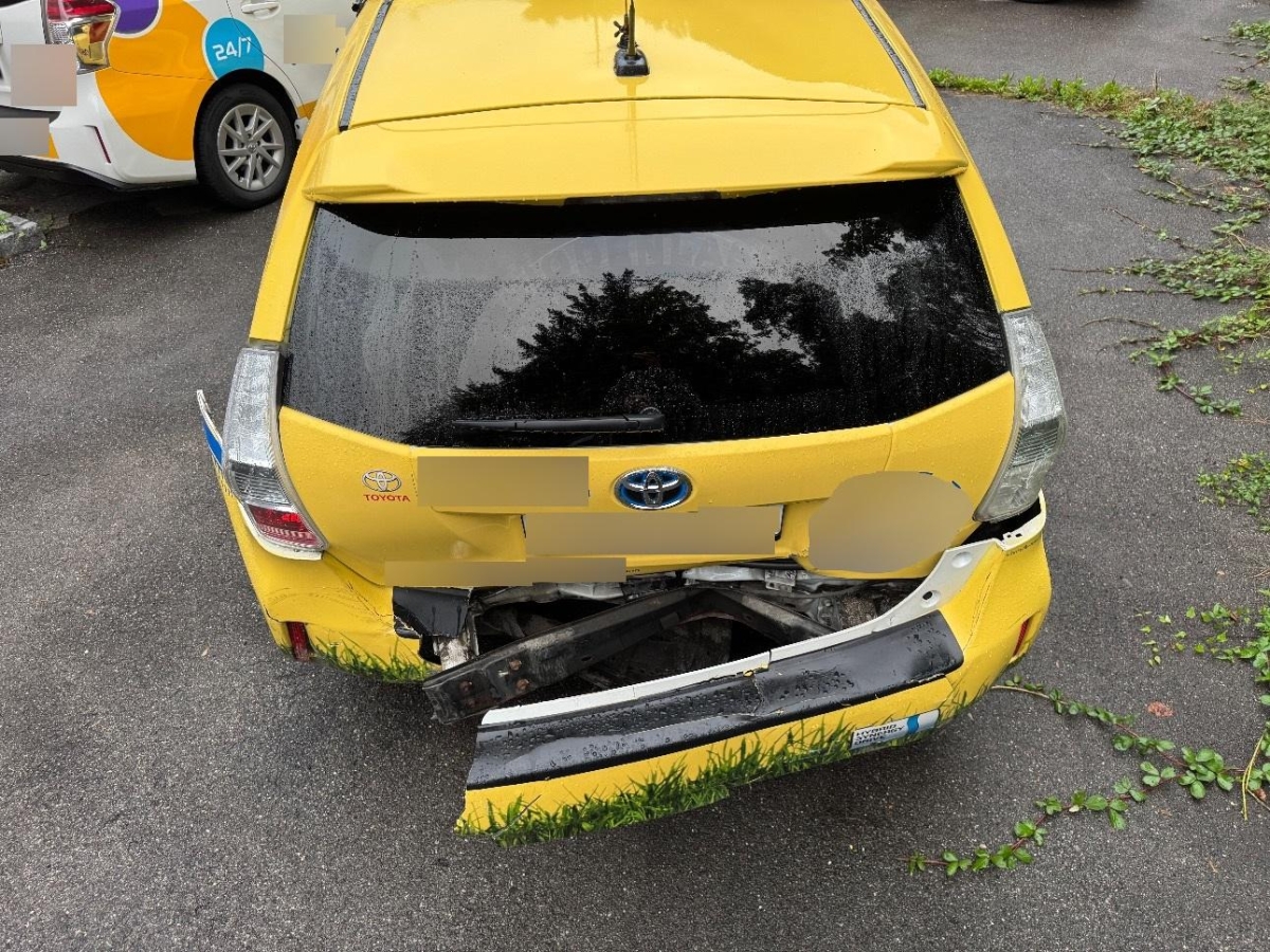 Auspuffanlage, D-Säule, Dach, Diverse Anbauteile, Heck, Heck links, Heckblech, Heckdeckel, Hinterachse, Kabelstrang, Kofferraumboden, Längsträger hinten links, Rad hinten links, Radaufhängung hinten links, Radhaus hinten links, Rücklicht links, Rücklicht rechts, Seitenwand links, Stossstange hinten, Wagenboden