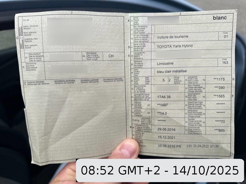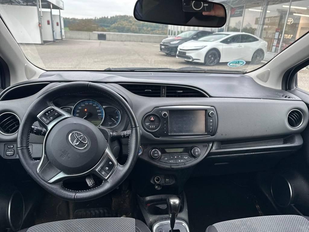 Sitze: Fahrersitz höhenverstellbar, Räder: Reifendruck-Kontrollanzeige, Schalthebelknauf in Leder, Media: 6 Lautsprecher, Multifunktionsanzeige, ABS, EBD elektronische Bremskraftverteilung, Airbag: Window-Kopfairbags, Sonnenblende Fahrer und Beifahrerseite mit Spiegel, Licht: Nebelschlussleuchte, Lenkrad: 3 Speichen-Lederlenkrad, Getriebe: Stufenloser Automat, Stossstangen und Aussenspiegel in Wagenfarbe, Media: Digitaler Radioempfang (DAB/DAB+), Drittes Bremslicht LED, Pollenfilter (Staubfilter), Aussentemperaturanzeige, Abgedunkelte Seiten- und Heckscheibe, Start-/Stop-Automatik, Ladeboden variabel, Licht: Tagfahrlicht, 3-Punkt-Sicherheitsgurte auf allen Plätzen, Tageskilometerzähler, Gurtstraffer vorne, Sitze mit Schleudertrauma-Schutzsystem, Airbag: Airbag Fahrer und Beifahrer, Stabilitäts- und Traktionskontrolle (VSC und TRC), Wegfahrsperre elektronisch, Gurtkontrolle, Lenkrad: Lenkrad längs- und höhenverstellbar, Räder: 4 Leichtmetallfelgen 16J mit Pneu, Airbag: Seitenairbags, Lichtwarnsummer, Katalysator geregelt, Media: Bluetooth Freisprecheinrichtung, Dachspoiler in Wagenfarbe, Media: Multimedia Audiosystem Toyota Touch 2, Assist: Rückfahrkamera, Heckscheibenheizung, Räder: Reifenreparatur-Set (Tire Fit), Polster: Stoff-Ausstattung, Bremsassistent (BAS), Getönte Scheiben, Make up-Spiegel links, Start-/Stop-Knopf, Blinker in Aussenspiegel, Zentralverriegelung mit Fernbedienung, 12-Volt-Steckdose vorne, Assist: Berganfahrhilfe (Hill Assist Control – HAC), Elektrische Fensterheber vorne + hinten, Klima: 2-Zonen-Klimaautomatik, ISOFIX Kindersitzvorrichtung, Licht: Abblendlichtausschaltverzögerung 'Follow me home’, Aussenspiegel rechts und links beheizbar und elektrisch verstellbar, Cupholder vorne und hinten, Kindersicherung an den hinteren Türen, Scheibenbremsen hinten, Nebelscheinwerfer mit Chromeinfassung, Make up-Spiegel rechts, Airbag: Knie-Airbag für Fahrer, Licht: Halogenscheinwerfer, Sitze: Rücksitzlehne geteilt abklappbar, Sitze: Vordersitze heizbar, Lackierung: Uni-Lackierung, Assist: Tempomat, Türgriffe aussen in Wagenfarbe, Servolenkung