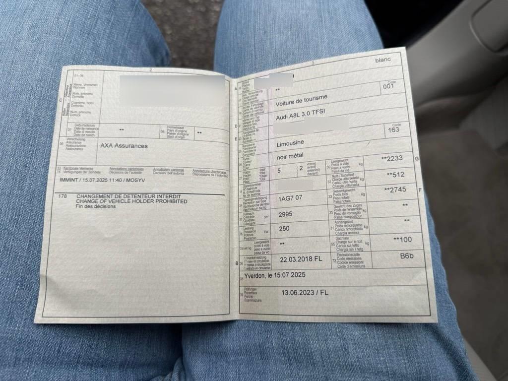 Drehzahlmesser, Lenkrad: Progressivlenkung, Media: Audi Phone Box, Servolenkung geschwindigkeitsabhängig, Notrufsystem, Start-/Stop-Knopf, Licht: Licht- und Regensensor, ISOFIX Kindersitzvorrichtung, Getriebe: 8-Stufen-Automat sequentiell, Elektronisches Stabilitäts-Programm (ESP), Kartentaschen an den Rückenlehnen, Sonnenschutzrollos für Heckscheibe und hintere Türscheiben elektrisch, Ambientebeleuchtung, Leseleuchten vorne, Polster: Leder-Ausstattung, Klima: Klimatisierungsautomatik 4- Zonen, Aschenbecher und Zigarettenanzünder, Assist: Umgebungskameras, Licht: Nebelschlussleuchte, Dachhimmel, Räder: Reifendruck-Kontrollanzeige, Höhenverstellbare Gurten vorne, Media: Digitaler Radioempfang (DAB), Klima: Pollenfilter (Staubfilter), Fahrer-Informationssystem mit Farbdisplay, Airbag: Airbag Fahrer und Beifahrer, Innenlicht-Abschaltverzögerung, Assist: Spurverlassenswarnung, Aussenspiegel rechts und links beheizt, elektrisch verstell-/ und einklappbar mit Memory – automatisch abblendend, Innenspiegel automatisch abblendbar, Mittelarmlehne hinten, Verbandskasten, Airbag: Airbag Beifahrer deaktivierbar, Garantie: 2 Jahre ohne Kilometerbegrenzung (ab 1. Inv.), Stossstangen und Aussenspiegel in Wagenfarbe, Mittelarmlehne vorn in Kunstleder schwarz mit Kontrastnaht in Rot, Digital Uhr, Scheinwerfer-Waschanlage, Diebstahlwarnanlage, Teppichfussmatten vorne und hinten, Licht: Tagfahrlicht, Räder: Reifenreparatur-Set (Tire Fit), Armlehne vorne mit Ablagefach, Adaptive air suspension: elektronisch geregelte Luftfederung, Getönte Scheiben, Assist: Park Distance Control vorne und hinten, Lenkrad: Multifunktionslenkrad in Leder, Media: Audi music interface, Gepäckraumklappe mit automatischer Öffnung, Licht: Matrix LED Scheinwerfer, Heckscheibenheizung, Media: Audi Sound System, Wegfahrsperre elektronisch, Licht: Coming-home-Funktion, Kopfstützen hinten, Aussentemperaturanzeige, Assist: Bremsassistent (BAS), Elektrische Fensterheber vorne + hinten, Leseleuchten hinten, Elektronische Differentialsperre (EDS), Räder: Leichtmetallräder im 5-V-Speichen-Design 18J, Antiblockiersystem (ABS), Cupholder vorne und hinten, Media: MMI Radio plus, Geschwindigkeitsregler, Airbag: Window-Kopfairbags, Warndreieck, 3-Punkt-Sicherheitsgurte auf allen Plätzen, Licht: LED Heckleuchten, Türen: Servoschliessung für Türen, Schalt- / Wählhebel in Leder, Media: Audi connect (3 Jahre), Antriebsschlupfregelung (ASR), Sitze: Sitzheizung vorne und hinten, Allradantrieb permanent, Wärmeschutzverglasung, Audi drive select, Licht: Drittes Bremslicht, Dekor: Holzapplikationen Esche, Sitze: Elektrisch einstellbare Lendenwirbelstütze für Vordersitze, Media: Audi Smartphone Interface, Komfortschlüssel inklusive sensorgesteuerter Gepäckraumentriegelung, Tageskilometerzähler, Panorama-Glasdach 2-teilig, Sitze: Komfortsitze vorn, elektrisch verstellbar mit Memory, Abschliessbare Radschrauben, Gurtstraffer vorne und hinten, Audi virtual cockpit 12,3”, Airbag: Seitenairbags vorne und hinten, Audi pre sense front, Zentralverriegelung mit Fernbedienung, Media: MMI Navigationssystem Plus, Scheibenwischer vorne mit Intervall, Katalysator geregelt, Ablagen in den Türen