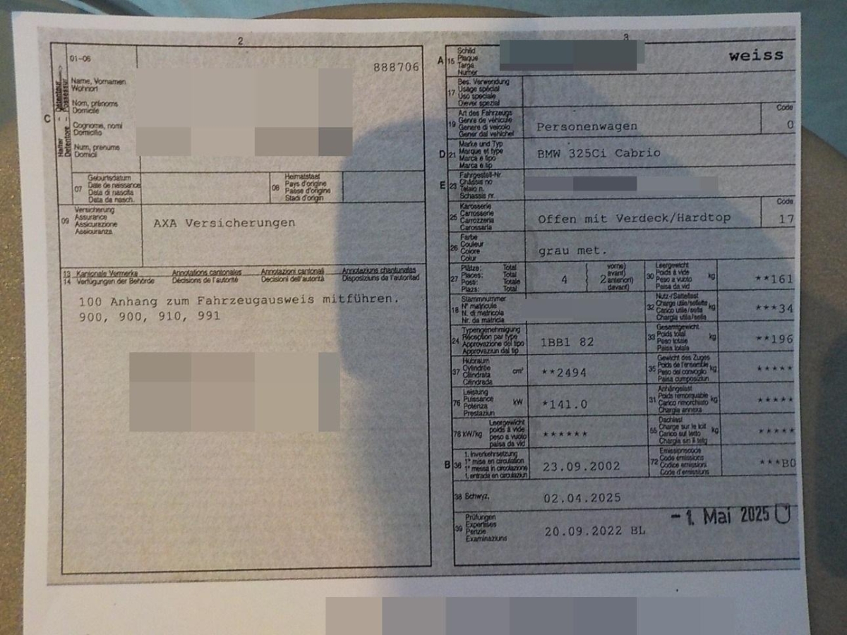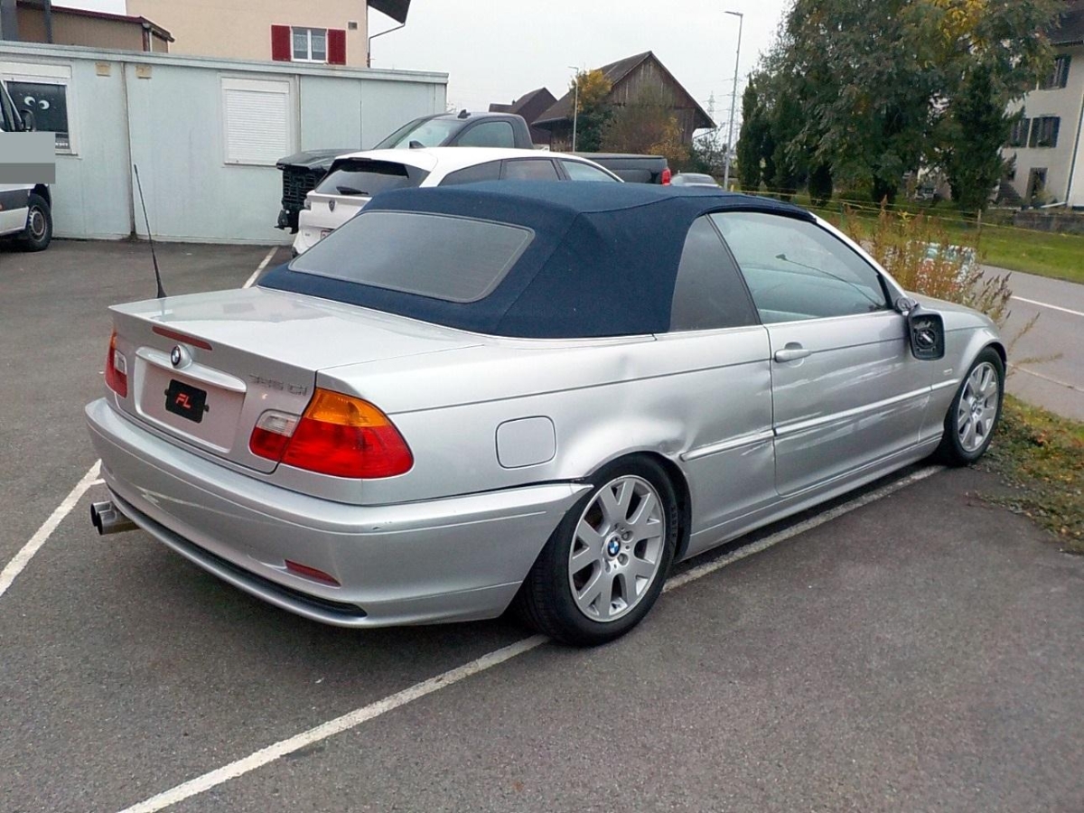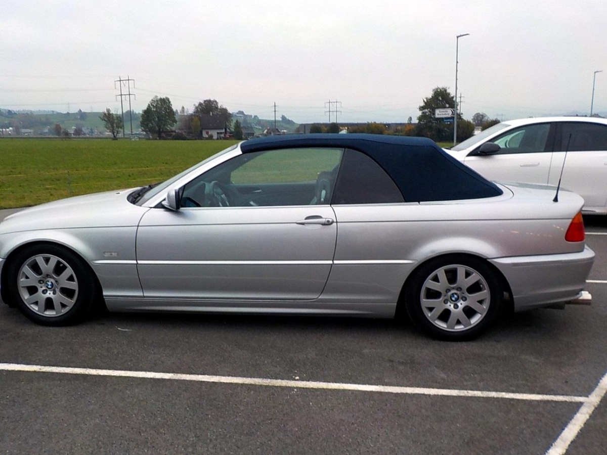 Vollautomatisches Verdeck, Mittelarmlehne hinten, Leuchtweitenregulierung von innen, Bavaria C Reverse RDS mit Antenne, Ent- störung und 4/6 LS, Dynamische Stabilitätskontrolle (DSC), 4 Leichtmetallfelgen im V-Speichen- styling 16J mit Pneu, Drittes Bremslicht, Airbag: Airbag Fahrer und Beifahrer, Sportlenkrad und Schalthebelgriff in, Pollenfilter (Staubfilter), Seitenschutz-Zierleisten, Vordersitze elektrisch verstellbar, Innenraumlicht-Paket, Stossstangen und Aussenspiegel in Wagenfarbe, Scheibenwischer vorne mit Intervall, Wegfahrsperre elektronisch, Antiblockiersystem (ABS), Katalysator geregelt, Bordcomputer, Seitenairbags, Lenkrad: Lenkrad längs- und höhenverstellbar, Wartungsintervall-Anzeige, Aussenspiegel rechts und links beheizt und elektrisch verstellbar, asphärisch gewölbtes Spiegelglas, Innenlicht-Abschaltverzögerung, Wassertemperaturanzeige, Leseleuchten vorne, Scheibenwaschdüsen beheizt, Gurtstraffer vorne, Bremsassistent (BAS), Digital Uhr, Vordersitze höhenverstellbar, Tageskilometerzähler, Lenkung, elektrisch unterstützt, Beide Make up-Spiegel beleuchtet, Nebelscheinwerfer, Drehzahlmesser, ISOFIX Kindersitzvorrichtung, Lichtwarnsummer, Assist: Cornering Brake Control (CBC), Automatische Stabilitäts- und Traktions- kontrolle, Klimatisierungsautomatik, Ecometer, Oelstandsanzeige, Aussentemperaturanzeige, Elektrische Fensterheber vorne + hinten, Höhenverstellbare Gurten vorne, Beleuchtetes und abschliessbares Handschuhfach, Gepäcknetze an beiden Vordersitzen, 5-Gang-Getriebe, Kopfstützen hinten, Grün getönte Scheiben, Elektronische Differentialsperre (ADB), Licht: Nebelschlussleuchte, Zentralverriegelung mit Fernbedienung, Check-Control-System, Zweiklanghorn, Mittelkonsole mit Ablagefach, Spezielle Stoff-Ausstattung, Überrollschutzsystem