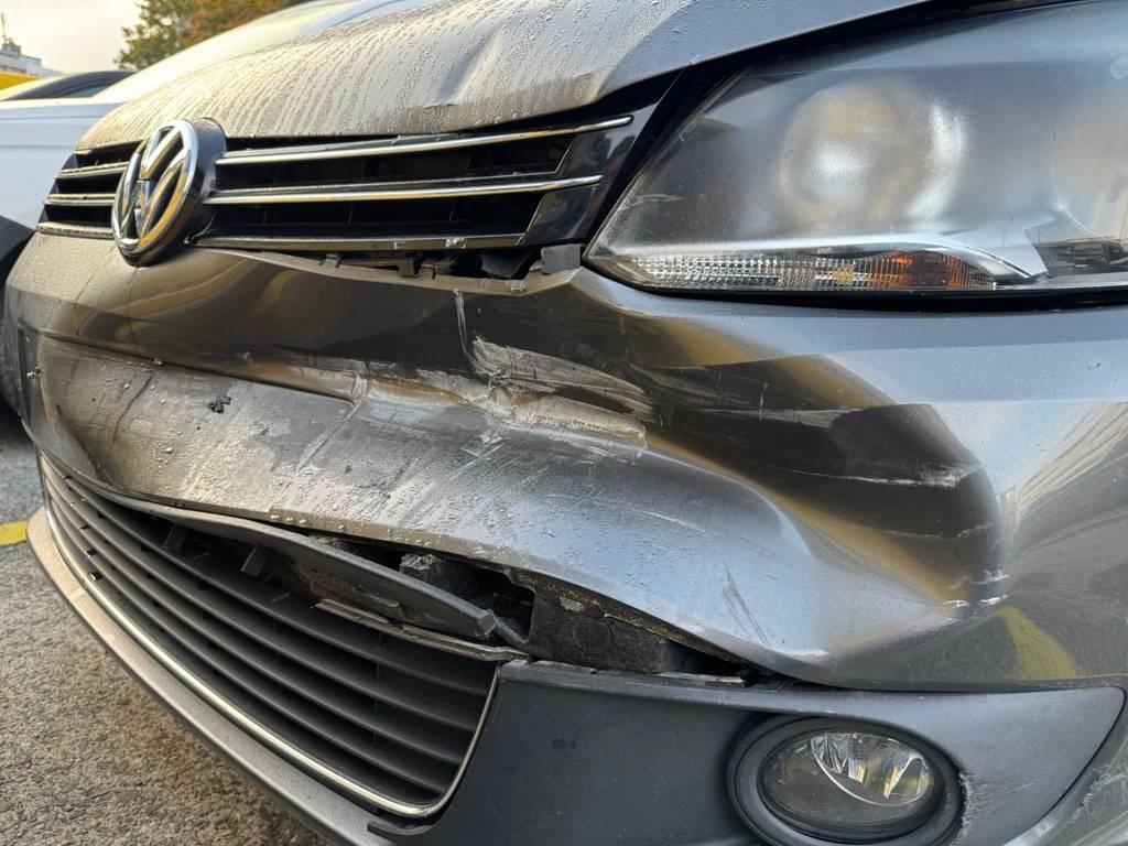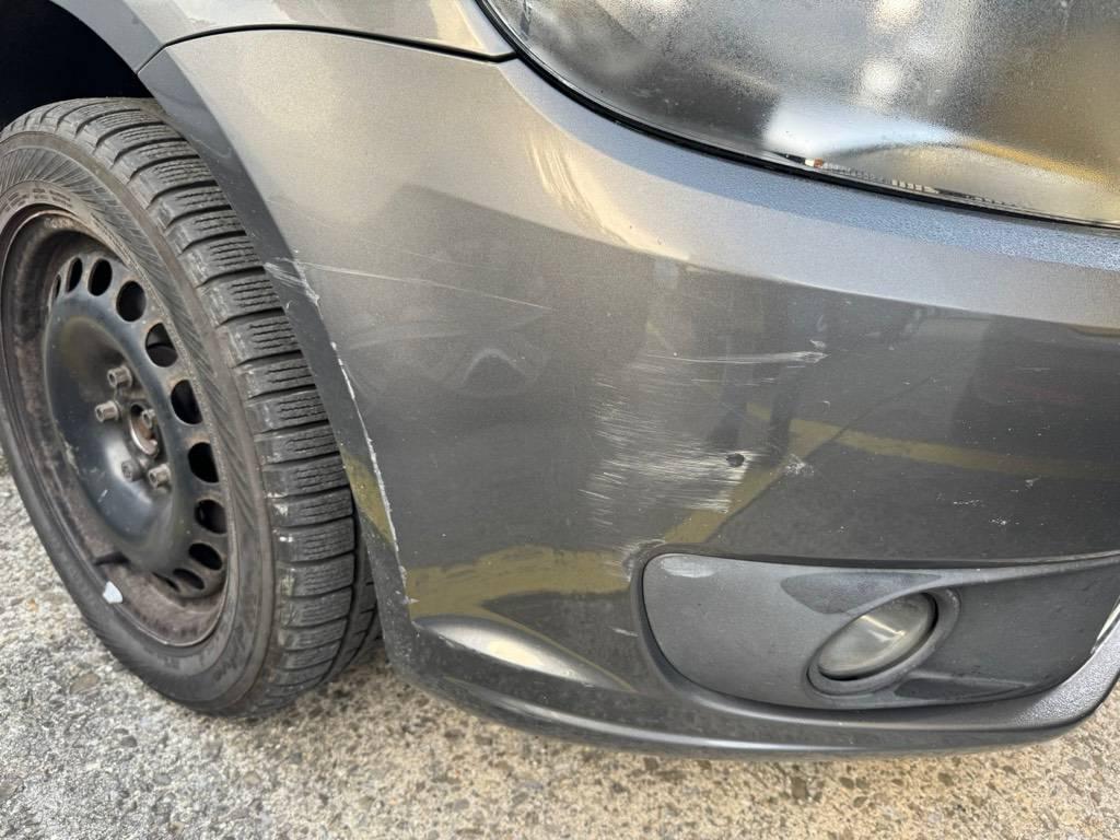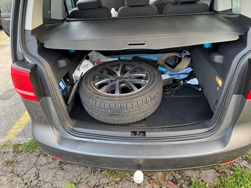 Notrad vorne links ist montiert. Beschädigtes Originalrad ist im Auto