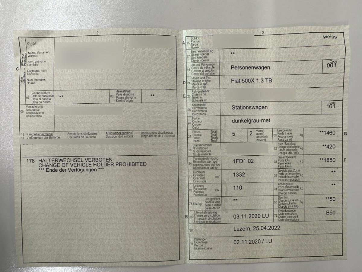 Fahrzeugausweis Vorhanden
