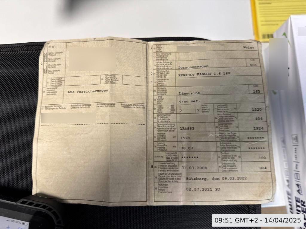 | Fahrzeugausweis | Vorhanden |
