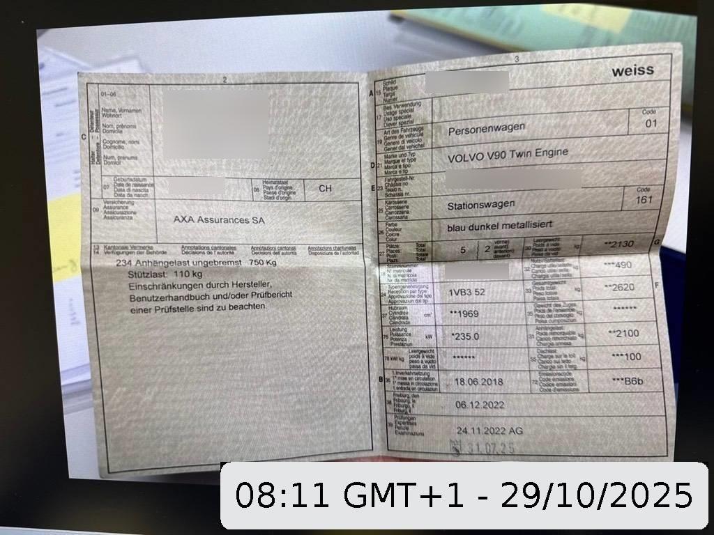 IntelliSafe-Assist, Aussenspiegel elektrisch einklappbar inkl. Bodenbeleuchtung, Leichtmetallräder im 10 Speichen-Design 19J, Ladekabel, Licht: Adaptives Bremslicht, Bremsenergie-Rückgewinnung, Gurtkontrolle, Sitze mit Schleudertrauma-Schutzsystem, Erste Hilfe Kasten, Media: Dachantenne, Assist: Einparkhilfe hinten, Servolenkung, Bordcomputer, Assist: Road Edge Detection – System zum Schutz vor unbeabsichtigtem Verlassen der Fahrbahn durch Lenk- und Bremseingriffe, Schalthebel beleuchtet, Airbag: Knie-Airbag für Fahrer, Lenkrad: Multifunktionslenkrad, Räder: Reifenreparatur-Set mit Kompressor, Media: Infotainment System Sensus Connect mit High Performance Sound, ISOFIX-Befestigungspunkte für Kindersitz an den äusseren Rücksitzen, 2-Zonen-Klimaautomatik, Aussentemperaturanzeige, Beide Make up-Spiegel beleuchtet, Scheibenwischer vorne mit Intervall, CZIP (Clean Zone Interior Package), Beinauflagen einstellbar und Lenden- wirbelstütze (4-Wege elektrisch eins- tellbar) für Fahrer- und Beifahrersitz, Fahrersitz elektrisch verstellbar mit Memory, Heckscheibenheizung, Licht: Drittes Bremslicht, Licht: LED Scheinwerfer mit Fernlichtassistent und integriertem LED-Tagfahrlicht, Flaschenhalterungen hinten, Innenraumbeleuchtung, Zentralverriegelung mit Fernbedienung und automatischer Türverriegelung, Automatische Parkbremse, Drive-Mode Einstellungen, Durchtauchschutz auf allen Sitzplätzen, Assist: Hill-Start Assist (HSA) – Berganfahrhilfe, Sitzneigungverstellung Fahrer, Vordersitze elektrisch höhenverstellbar, Auspuffanlage mit 2 Endrohren, Assist: Driver Alert – Aufmerksamkeitswarner, Akustikverglasung für die Seitenfenster, Mittelarmlehne hinten mit Fach und Cupholder, Standheizung mit Timer, Airbag: Kopf -/ Schulterairbag, Licht: Licht- und Regensensor, Einstiegsschienen vorne und hinten mit Logo, Gurtstraffer vorne und hinten, Seitenfenster-Zierleisten verchromt, Katalysator geregelt, Tempomat mit Geschwindigkeitsbegrenzer, Höhenverstellbare Gurten vorne, Dynamische Stabilitäts- und Traktions- kontrolle DSTC, LED Blinker im Aussenspiegel, Auspuffanlage verchromt, City Safety automatische Notbremsung bis zu einer Geschwindigkeit von 50 km/h, Dekoreinlagen Charcoal, Assist: TPMS Reifendrucküberwachungssystem, Klima: Pollenfilter (Staubfilter), IDIS (Intelligent Driver Information System), Kindersicherung für Schiebetüren, Lichteinschaltautomatik, Getränkehalter, 2 vorne, Assist: Bremsassistent (BAS), Airbag: Seitenairbags für Fahrer und Beifahrer, Airbag: Airbag Beifahrer deaktivierbar, Textilfussmatten, Lenkrad und Schalthebelgriff in Leder, Lenkrad: Sicherheitslenksäule, Getriebe: 8-Stufen-Automat sequentiell, Armaturenobertafel in Lederoptik mit Kontrastnähten, Colorverglasung, Volvo On Call mit WiFi-Hotspot, Sonnenschutzrollos für Türscheiben hinten, Airbag: Airbag Fahrer und Beifahrer, Lenkrad: Lenkrad längs- und höhenverstellbar, Ambientebeleuchtung, Assist: Elektronisches Stabilitäts-Programm (ESP), Stop/Start-Technologie, Polsterung Leder Nappa, Assist: Oncoming Lane Mitigation, Komfortschliessanlage mit Funk-Fernbedienung, 2 Steckdosen in der Mittelkonsole (vorne und hinten), Innenraumlicht-Paket, Innenspiegel automatisch abblendbar, Beifahrersitz elektrisch verstellbar, Dekor: Einlagen Echtholz Linear Walnut – Armaturentafel, Mittelkonsole, Bedieneinheit, Türen, 3-Punkt-Sicherheitsgurte auf allen Plätzen, Kopfstützen hinten, Memoryfunktion für Beifahrersitz, ABS, EBD elektronische Bremskraftverteilung, Sitze: Rücksitzlehne geteilt abklappbar, Getönte Scheiben, Digitale Instrumentierung 12,3”, Anhänger Stabilisierungkontrolle TSA, Wegfahrsperre elektronisch, Elektronische Differentialsperre, Allradantrieb permanent, Beschlagsensor, Assist: Verkehrszeichenerkennung RSI – Road Sign Information System, Elektrische Fensterheber vorne + hinten mit Komfortschliessung
