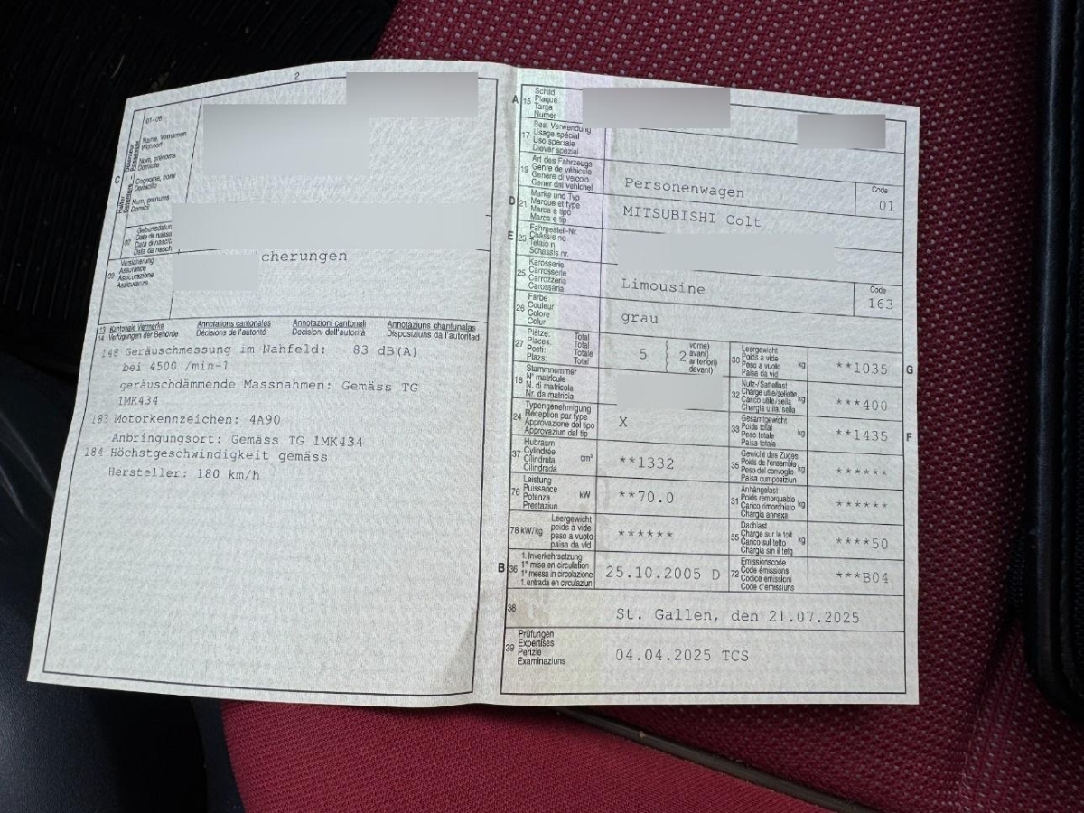 | Fahrzeugausweis | Vorhanden |