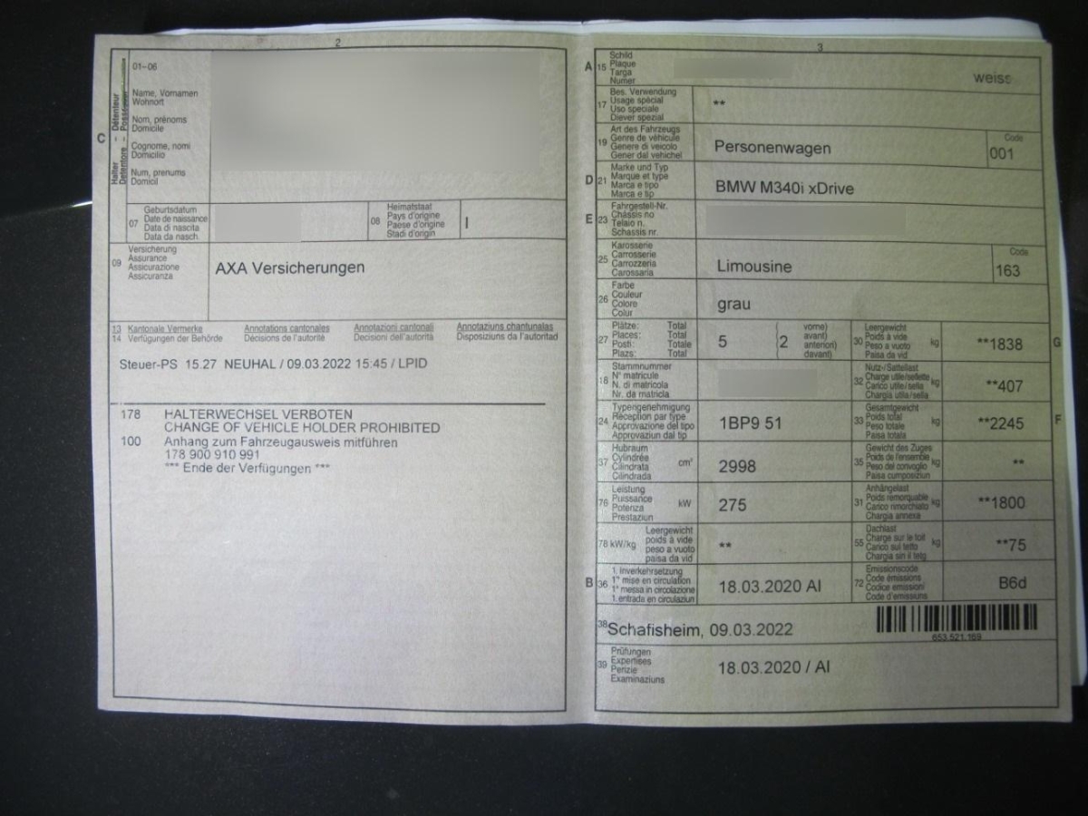 M Technik Paket (Verstärktes Kühlsystem), Elektrisches Glasschiebedach, Akustikglas, BMW Live Cockpit Professional, Anhängevorrichtung el. abschwenkbar, Dekor: BMW Individual Interieurleisten Pianolack schwarz, BMW Individual Shadow Line glänzend mit erweiterten Umfängen, Parkassistent vorne und hinten inkl. Rückfahrkamera und Surround View, Vorbereitung externes CD-Laufwerk, Komfortzugang, Active Protection, Innen- und Aussenspiegel automatisch abblendend, BMW Individual Instrumententafel lederbezogen, Vordersitze elektrisch verstellbar, Fahrersitz mit Memory-Funktion, Sonnenschutzverglasung, M Leichtmetallräder Doppelspeiche 792 M 19J, Bicolor Ceriumgrau matt mit Sportreifen und Mischbereifung, Harman/Kardon Surround Sound-System, Diebstahlwarnanlage, BMW Gestiksteuerung, Sitze: Einstellbare Lendenwirbelstütze für den Fahrer und Beifahrer, Driving Assistant Professional, Licht: Fernlicht-Assistent, Media: Telefonie mit Wireless Charging, Head-Up Display, Sitze: Sitzheizung vorne und hinten, Heckklappe automatisch, Wi-Fi Hotspot, BMW Garantie: 3 Jahre oder 100’000 km Gratis-Service: 10 Jahre oder 100’000 km (ab 1. Inv.), Laserlicht, BMW Repair Inclusive 5 Jahre oder 200’000 km, Lenkrad: Lenkrad beheizbar, Galvanikapplikation