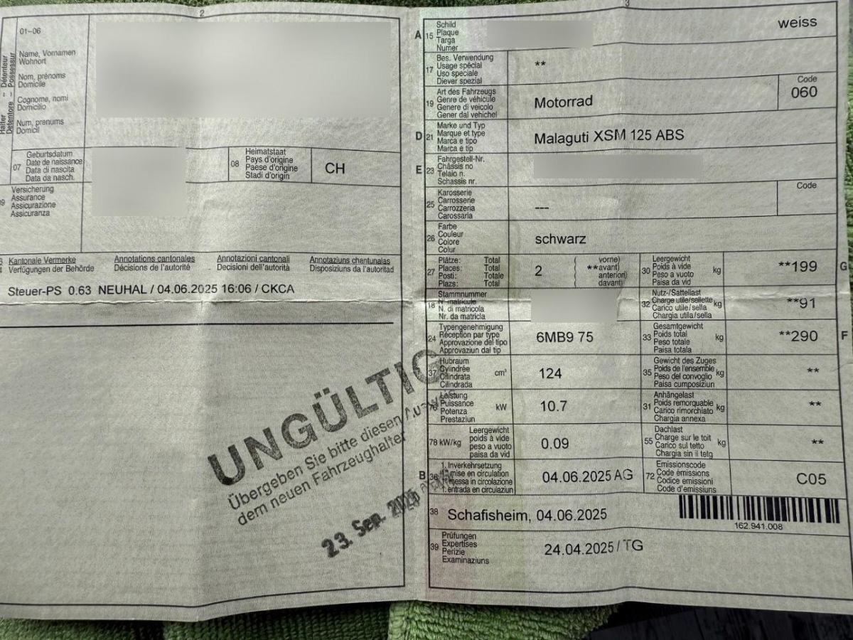 Fahrzeugausweis Vorhanden