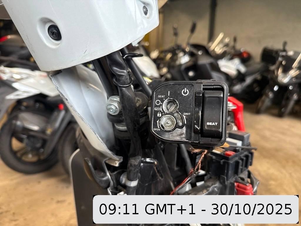 Auspufftopf, Aussenspiegel links, Aussenspiegel rechts, Fussraster rechts, Gabelholm, Kabelstrang, Lenkanschlag, Lenker, Lenkschloss, Rahmen, Scheinwerfer, Schutzblech vorne, Seite rechts, Verschalungen rechts, Verschalungen vorne, Zündschloss