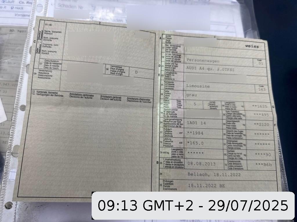 Die (vom Fahrzeugexperten) ermittelten Reparaturkosten beziehen sich auf das versicherte Ereignis. Allfällige zusätzliche, nicht versicherte Schäden/Vorschäden, sind in den Reparaturkosten nicht enthalten. Die deklarierten Ausstattungsmerkmale können von der effektiven Ausstattung abweichen.