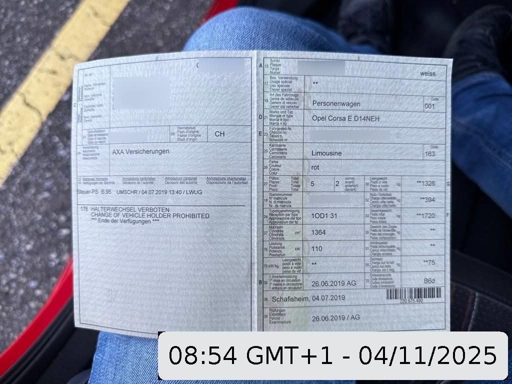 | Fahrzeugausweis | Vorhanden |
