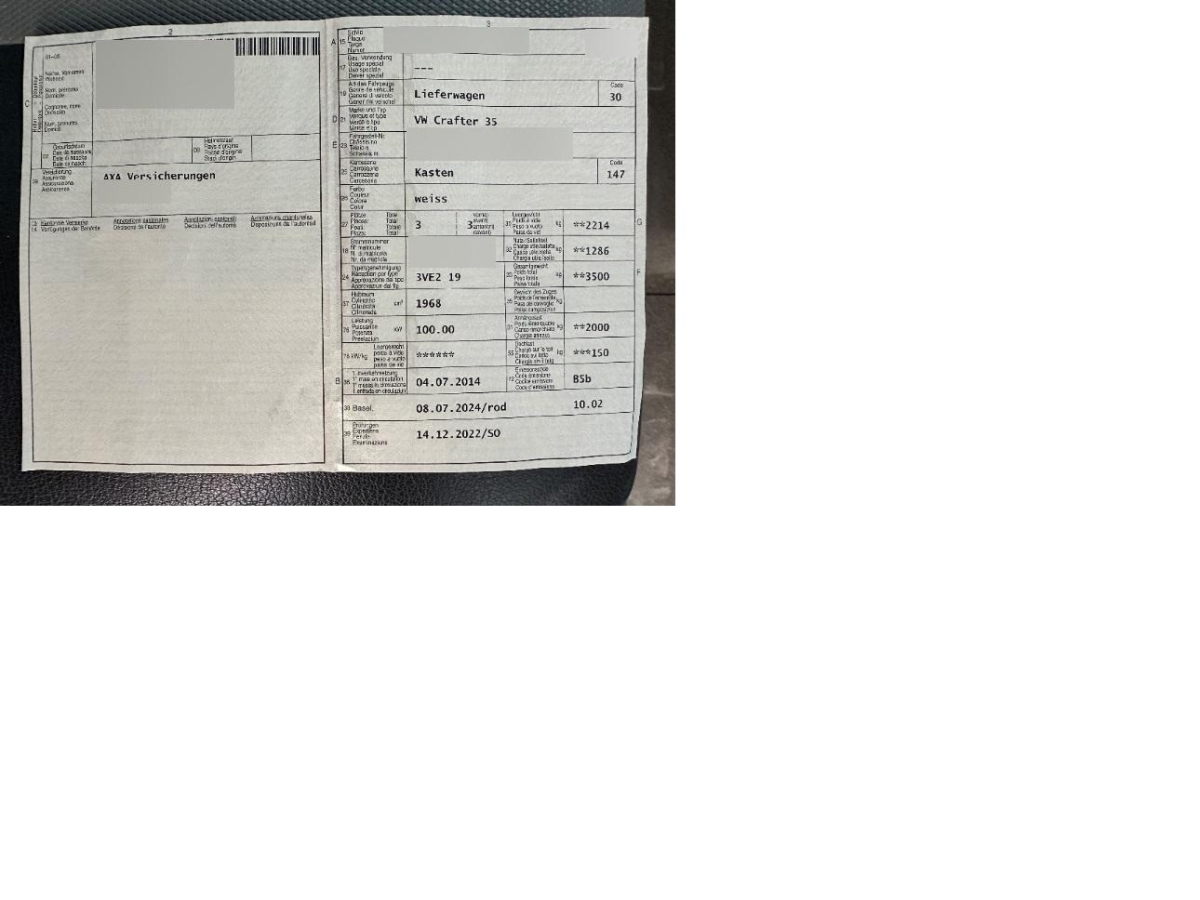 | Fahrzeugausweis | Vorhanden |