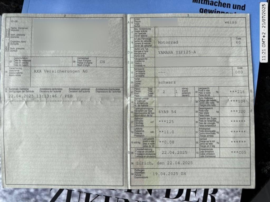 Fahrzeugausweis Vorhanden
