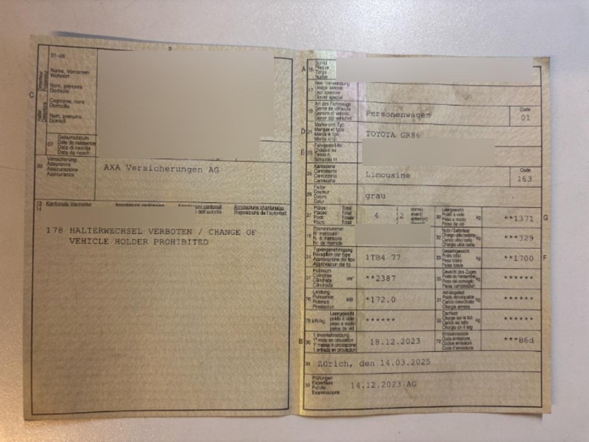 Fahrzeugausweis Vorhanden