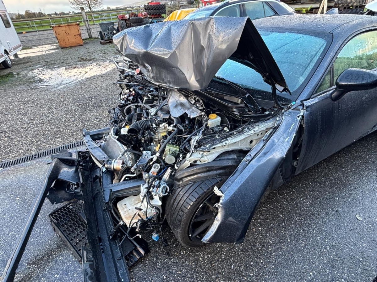 A-Säule, Achsträger, Airbag ausgelöst, Antrieb, Antriebswelle, Auspuffanlage, Federbein vorne links, Federbein vorne rechts, Front, Frontblech, Frontscheibe, Getriebe, Gurtstraffer ausgelöst, Interieur, Klimakühler, Kotflügel links, Kotflügel rechts, Kühler, Ladeluftkühler, Lenkung, Längsträger vorne links, Längsträger vorne rechts, Motor, Motorgehäuse, Motorhaube, Motorträger, Rad vorne links, Rad vorne rechts, Radhaus vorne links, Radhaus vorne rechts, Scheinwerfer links, Scheinwerfer rechts, Stossstange hinten, Stosstange vorne, Türe vorne links, Türe vorne rechts, Vorderachse