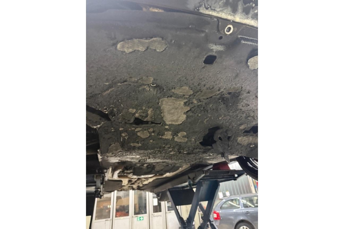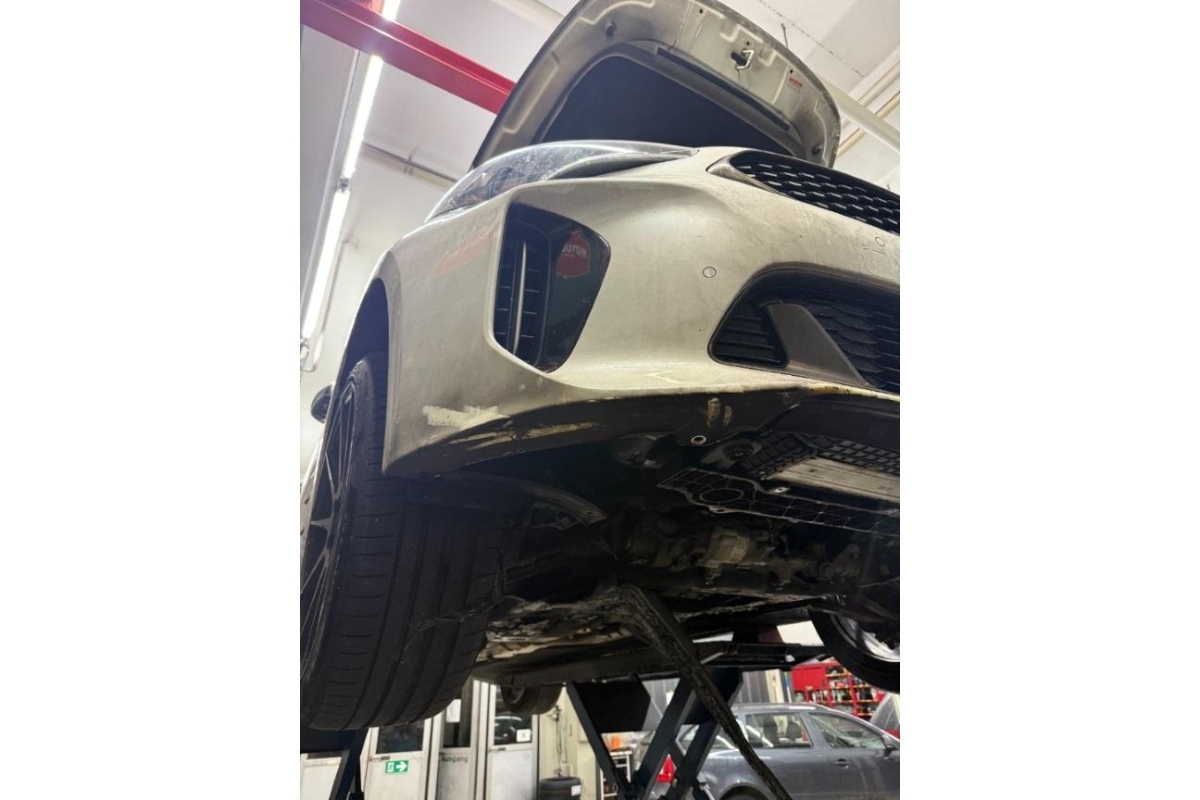 Durch einen Funkenschlag im Motorraum hat der Unterboden mit Benzin Feuer entfacht und diverse Kunststoff wie Verschalungen, Leitungen und Manschetten beschädigt. Motor konnte nicht geprüft werden