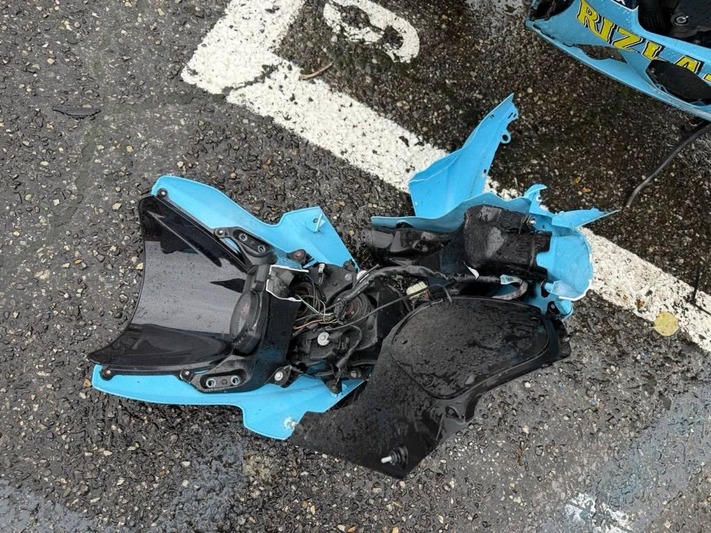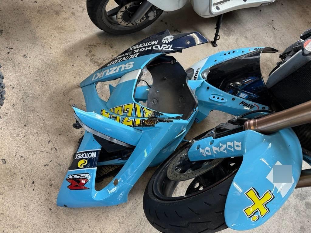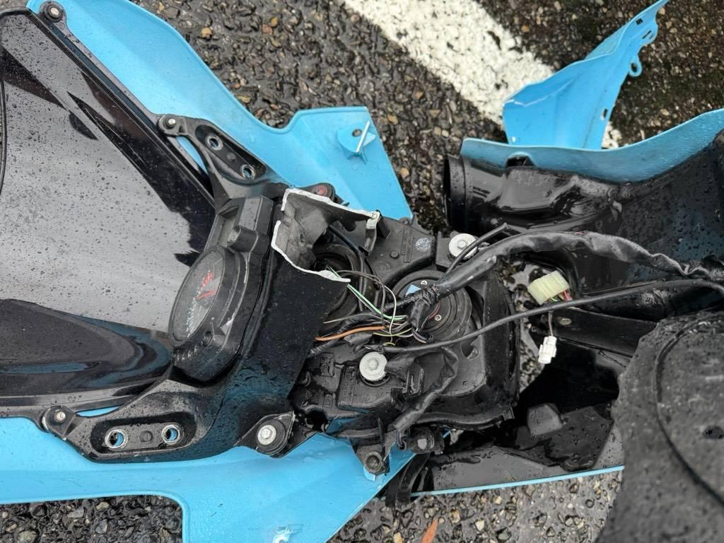 Armaturen, Auspuffkollektor, Auspufftopf, Aussenspiegel links, Aussenspiegel rechts, Front, Fussraster links, Fussraster rechts, Gabelholm, Griff links, Griff rechts, Heckverkleidung, Kabelstrang, Kupplungsgehäuse, Kupplungsgehäuse, Kühler, Lenkanschlag, Lenker, Rad vorne, Rücklicht links, Rücklicht rechts, Scheinwerfer, Schutzblech vorne, Seitenkoffer rechts, Tank, Verschalungen hinten, Verschalungen links, Verschalungen rechts, Verschalungen vorne, Windschutzscheibe