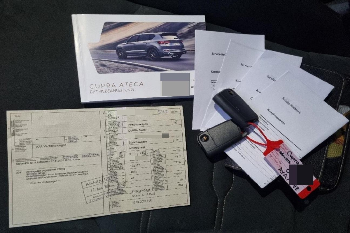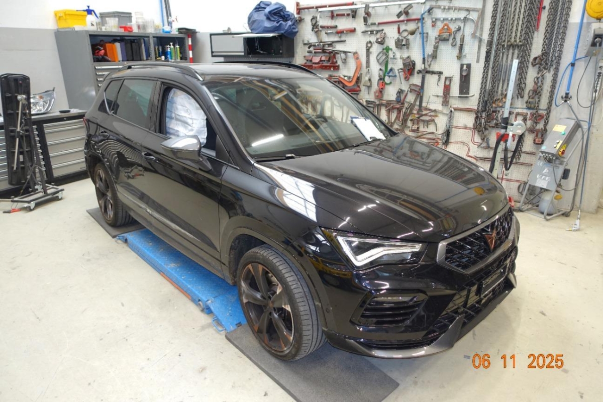 Assist: Top View Camera (Rundumblick), Sitze: CUPRA Sportschalensitze, Innenspiegel automatisch abblendbar, Lenkrad: Multifunktionslenkrad mit Schaltwippen, Assist: Auto-Hold-Funktion, Elektronische Differentialsperre (XDS), Airbag: Kopfairbags vorne und hinten, Auspuffanlage mit 4 Endrohren, Nebelschlussleuchte, Bremsenergie-Rückgewinnung, Fahrwerk: Progressivlenkung, Servolenkung mit geschwindigkeitsabhängiger Lenkkraftunterstützung, Assist: Multikollisionsbremse, Airbag: Airbag Fahrer und Beifahrer, Radlaufblenden in Wagenfarbe, Assist: Verkehrszeichenerkennung, Aussenspiegel und Türgriffe in Wagenfarbe, Pollenfilter (Staubfilter), Beleuchtete Sonnenblende links mit abdeckbarem Spiegel und Lasche, rechts mit abdeckbarem Spiegel, Assist: Müdigkeitserkennung, Media: DAB+ (Digital Audio Broadcasting), Innenleuchten LED, Aussenspiegel mit Beifahrerspiegelabsenkung, Licht: Coming-home-Funktion, Scheinwerferreinigungsanlage, Lenkrad: Schaltwippen am Lenkrad für DSG, Fahrwerk: Adaptive Fahrwerksregelung DCC, Fensterschachtzierleisten in Aluminium, Media: 9.2″ 3D Infotainment (MIB3), Klima: 2-Zonen-Klimaautomatik, Assist: Elektronische Parkbremse mit Auto Hold Funktion, Assist: Tiredness detection (Müdigkeitserkennung), Media: CUPRA FullLink, Assist: Spurhalteassistent Lane Assist, ESC mit EBA, DSR, XDS und Reifendruckkontrolle, Sitze: Easy Backseat Release (Rücksitzentriegelung im Kofferraum), Polster: Sitzbezüge in Dinamica „black”, Media: 2 USB C Anschlüsse hinten und vorne, Media: CUPRA Navigationssystem, Licht: LED-Nebelscheinwerfer mit Cornering-Funktion, Elektrische Fensterheber vorne und hinten mit Komfortschaltung und Einklemmschutz, Heckdiffusor, Airbag: Knie-Airbag für Fahrer, Aussenspiegel rechts und links beheizt,elektrisch verstell- / und einklappbar, Licht: Leuchtweitenregulierung dynamisch, Allradantrieb permanent, Beleuchtetes Einstiegssystem mit Umfeldbeleuchtung, Media: CUPRA Connect Remote & Access für Navigationssystem, Sitze: Mittelarmlehne hinten, Lackierung: Uni-Lackierung, ABS, EBV elektronische Bremskraft-verteilung, Assist: Tempomat, Wegfahrsperre elektronisch, Dekor: Dekorblenden in Grau glänzend, Dachhimmel schwarz, Assist: Lane assist (Spurhalteassistent), Media: CUPRA Connect Online Infotainment für Navigationssystem, Sitze: Geteilt abklappbare Rücksitzlehne 1/3 – 2/3, Sitze: Einstellbare Lendenwirbelstütze für den Fahrer und Beifahrer, Vollverzinkte Karosserie, Licht- und Regensensor, Media: Mobiltelefon Freisprecheinrichtung Bluetooth, Media: CUPRA Connect Safety & Services für Navigationssystem, Full Digital Cockpit, Abgedunkelte Scheiben ab B-Säule hinten, Räder: Alufelgen 8J x 19″, Machined Sport Black / Silver (245/40 R19), Sitze: Kopfstützen vorne höhenverstellbar, Licht: Drittes Bremslicht, Ambientebeleuchtung Multi-Colour, Garantie: Cupra 3 Jahre Lack-Gewährleistung (ab 1. Inv.), Schlüsselloses Schliess- und Startsystem (KESSY), Stopp – Start- und Rekuperationssystem, Getriebe: Sequentielles 7-Gang-Getriebe mit Automatikfunktion, 3-Punkt-Sicherheitsgurte auf allen Plätzen, Media: CUPRA Connectivity Box, Assist: Einparkhilfe vorne und hinten mit optischer Anzeige, Assist: Parklenkassistent, Räder: Reifenreparatur-Set (Tire Fit), Sitze: Easy-Entry Lehnenentriegelung, Sportabgasanlage mit 4 Endrohren, Heckspoiler, Dachreling schwarz, Heckscheiben-Wisch-/Waschanlage mit Intervall, CUPRA Drive Profile mit „driving experience button” Comfort, Sport, CUPRA, Individual, Snow, Offroad, Scheibenwaschdüsen beheizt, Lenkrad: Beheizbares Ledermultifunktionslenkrad mit Schaltwippen, Assist: Traffic sign recognition (Verkehrszeichenerkennung), Garantie: Cupra 12 Jahre Gewährleistung gegen Karosserie-Durchrostung (ab 1. Inv.), Media: Sprachsteuerung, Gurtkontrolle, Pyrotechnische Gurtstraffer und Gurtkraftbegrenzer, Sitze: ISOFIX Kindersitzvorrichtung, Sitze: Sitzheizung für Vordersitze, getrennt regelbar, Media: Radiovorbereitung, Antenne, Entstörung und 8 LS, Sitze: Vordersitze höhenverstellbar mit Lendenwirbelstütze, Sitze: 2 verstellbare Kopfstützen vorne und 3 hinten, Sitze: Schublade unter Fahrersitz, Media: Kartenmaterial ”Europa”, Höhenverstellbare Gurten vorne, LED Innenraumbeleuchtung, Heckscheibenheizung, Assist: Speedlimiter, Garantie: Cupra Garantie 2 Jahre ohne Kilometerbegrenzung (ab 1. Inv.), Assist: Prädiktive automatische Distanzregelung ACC, Airbag: Airbag Beifahrer deaktivierbar, Lenkrad und Schalthebelgriff in Leder, Dekor: Türverkleidung mit Ambient light (Multicolor: white, ice white, red, orange, yellow, ice blue, eco blue), Räder: Reifendruck-Kontrollanzeige, Sitze: Gurtstraffer vorne, Katalysator geregelt, 2 Schlüssel mit Fernbedienung, Teppichfussmatten vorne und hinten, Assist: Multifunktionskamera, Einstiegsleisten in Aluminium, Airbag: Seitenairbags für Fahrer und Beifahrer, Licht : LED-Scheinwerfer für Abblend- und Fernlicht, Airbag: Window-Kopfairbags, Licht: LED-Heckleuchten mit dynamischem Blinklicht, Zentralverriegelung mit Fernbedienung, Bordcomputer, Sitze: Mittelarmlehne vorne, Licht: LED-Tagfahrlicht, Aussenspiegel mit LED-Umfeldbeleuchtung