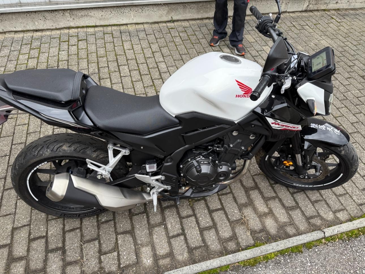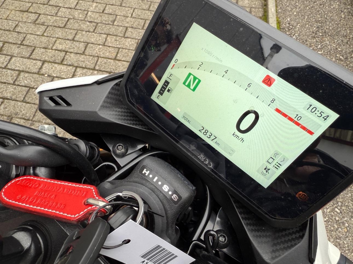 Armaturen, Aussenspiegel links, Front, Fussraster links, Gabelholm, Kupplungsgehäuse, Motorgehäuse, Scheinwerfer, Schutzblech vorne, Seite links, Verschalungen links, Verschalungen vorne