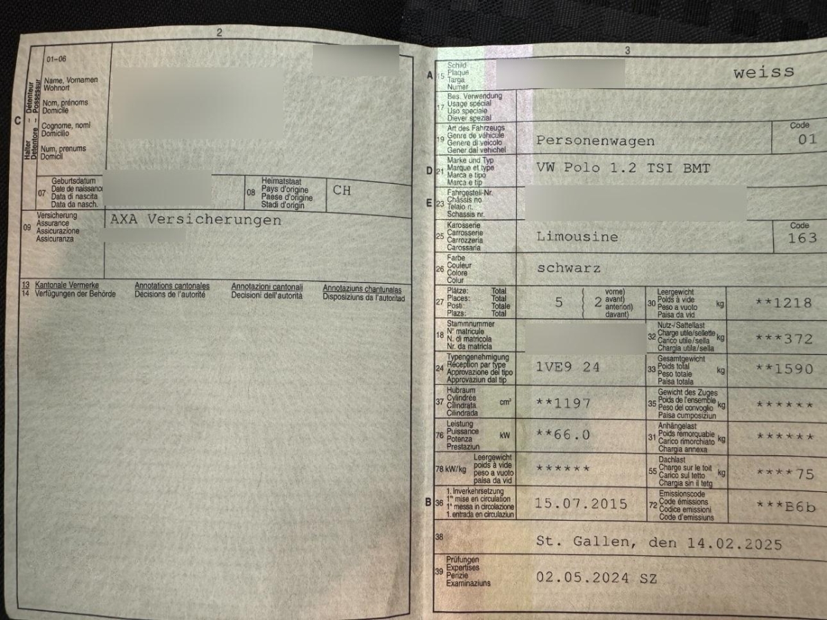 | Fahrzeugausweis | Vorhanden |