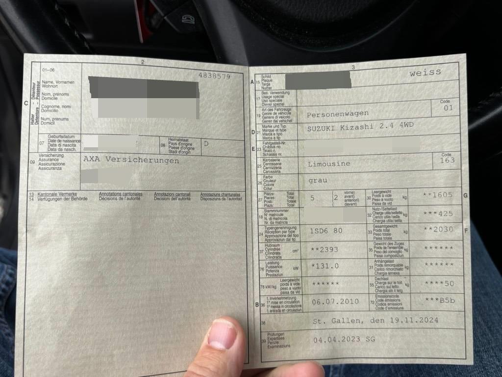 | Fahrzeugausweis | Vorhanden |