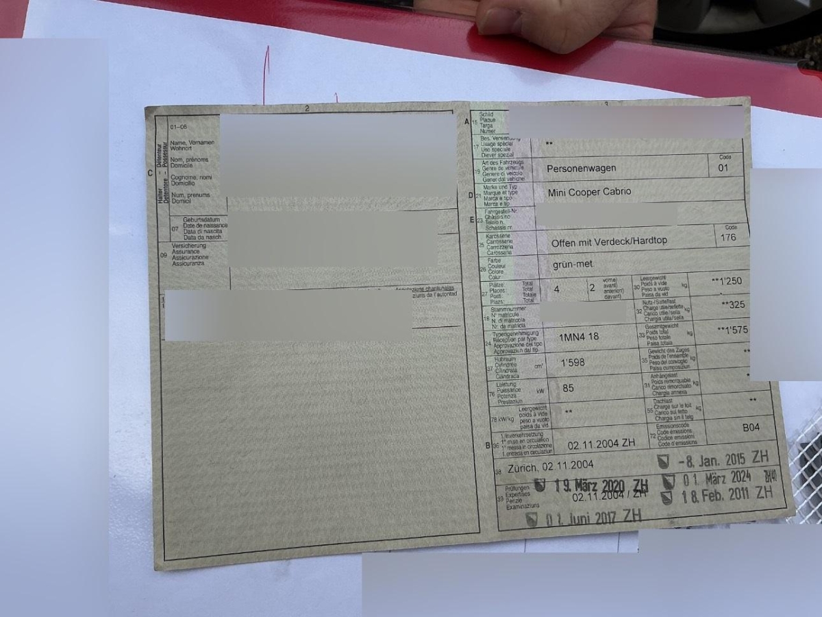 Cupholder vorne und hinten, Lenkrad: Servolenkung, Tageskilometerzähler, Mittelkonsole, Antiblockiersystem (ABS), Lichtwarnsummer, Airbag: Airbag Fahrer und Beifahrer, Reifenreparatur-Set mit Kompressor, Bremsbelag-Verschleissanzeige, Park Distance Control (PDC), Vollautomatisches Verdeck, Lackierung: Uni-Lackierung, Radio Wave, Getönte Scheiben, Drehzahlmesser, Pollenfilter (Staubfilter), Heckscheibenheizung, Cornering Brake Control (CBC), Wassertemperaturanzeige, Kopfstützen hinten, Wartungsintervall-Anzeige, 4 Leichtmetallfelgen 15J mit Pneu, Stabilisator vorne, Lenkrad höhenverstellbar, Applikationen glänzend, Überrollschutzsystem, Seitenschwellerverbreiterung in schwarz, Reifendruckverlust-Warnsystem, Aussenspiegel rechts und links elektrisch verstellbar, Polster: Stoff-Ausstattung, Scheibenwischer vorne mit Intervall, Katalysator geregelt, Fahrersitz höhenverstellbar, Digital Uhr, Zentralverriegelung mit Fernbedienung, Zweiklanghorn, Seitenairbags, 5-Gang-Getriebe, Licht: Nebelschlussleuchte, Sitze: Rücksitzlehne geteilt abklappbar, Gurtstraffer vorne, Einstiegsschienen, Nichtraucherausführung, Stossstangen und Aussenspiegel in Wagenfarbe, Abschliessbares Handschuhfach, Drittes Bremslicht, Türgriffe innen verchromt, Licht: Abblendlichtausschaltverzögerung 'Follow me home’, Wegfahrsperre elektronisch, Leuchtweitenregulierung elektrisch, Türgriffe aussen verchromt, Elektrische Fensterheber vorne + hinten, Bremsassistent (BAS)