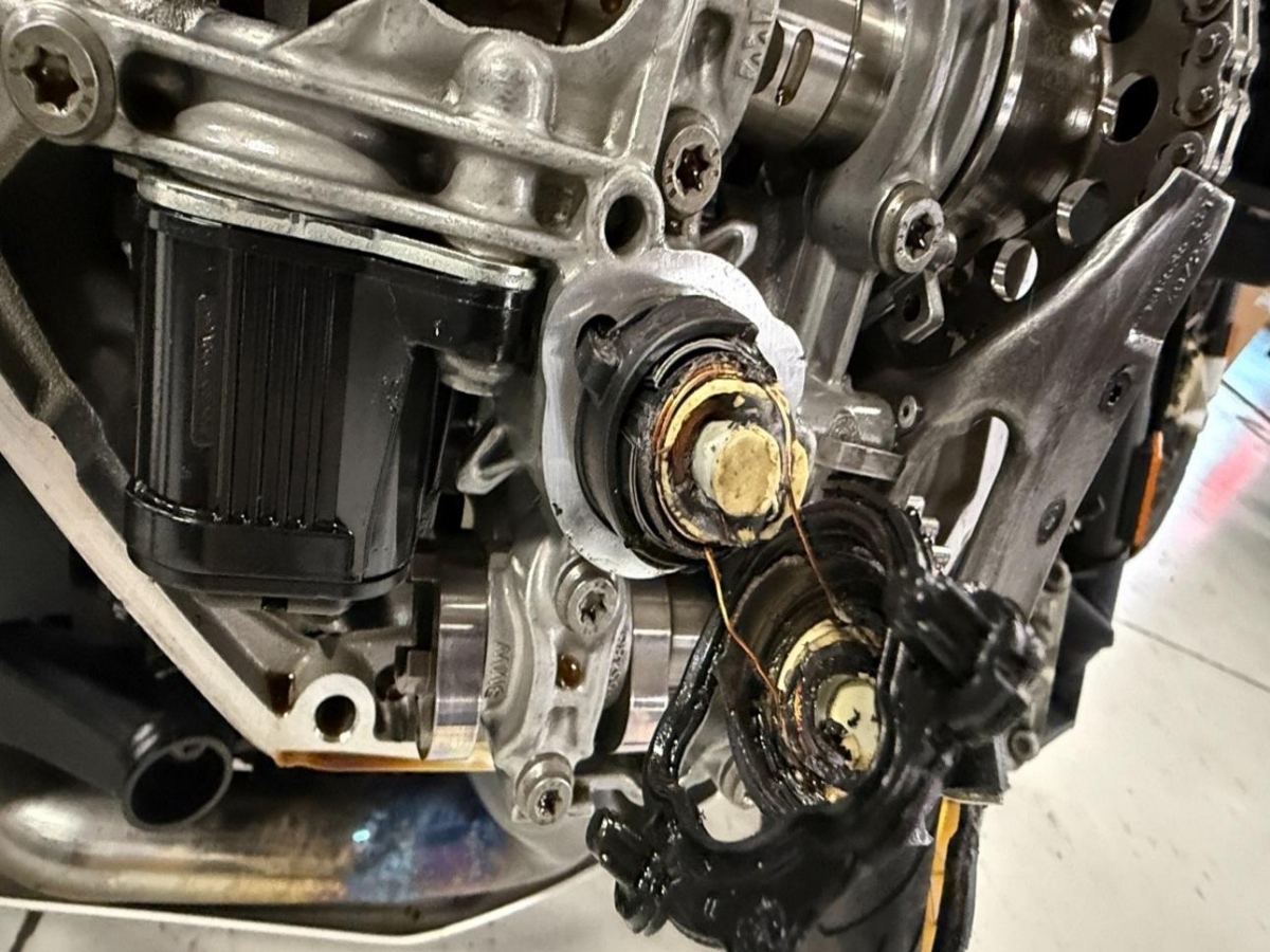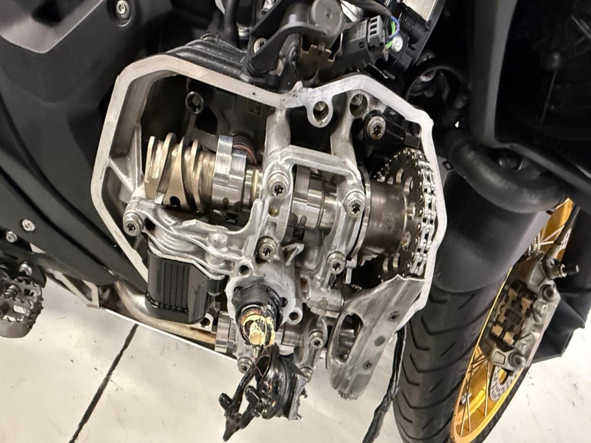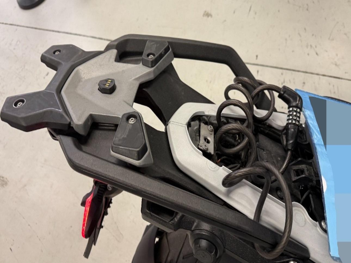 Armaturen, Auspuffkollektor, Diverse Anbauteile, Fussraster links, Getriebe, Heckverkleidung, Kabelstrang, Lenkanschlag, Lenkschloss, Motor, Rad hinten, Schutzblech hinten, Schwinge, Seitenkoffer links, Seitenkoffer rechts, Tank, Verschalungen hinten, Zündschloss