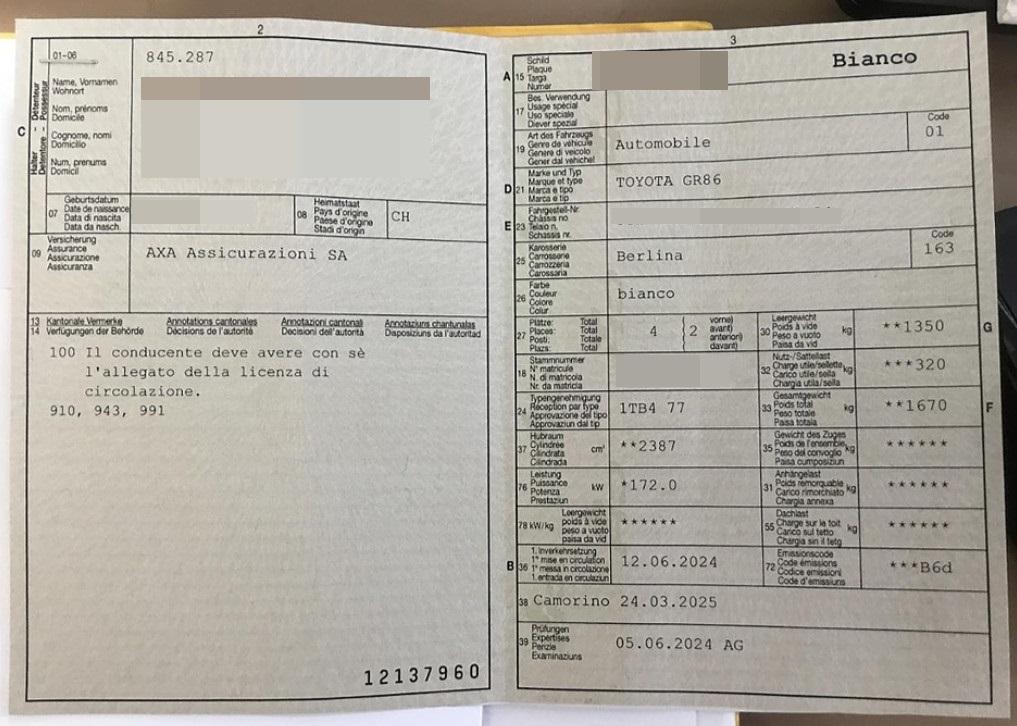 | Fahrzeugausweis | Vorhanden |